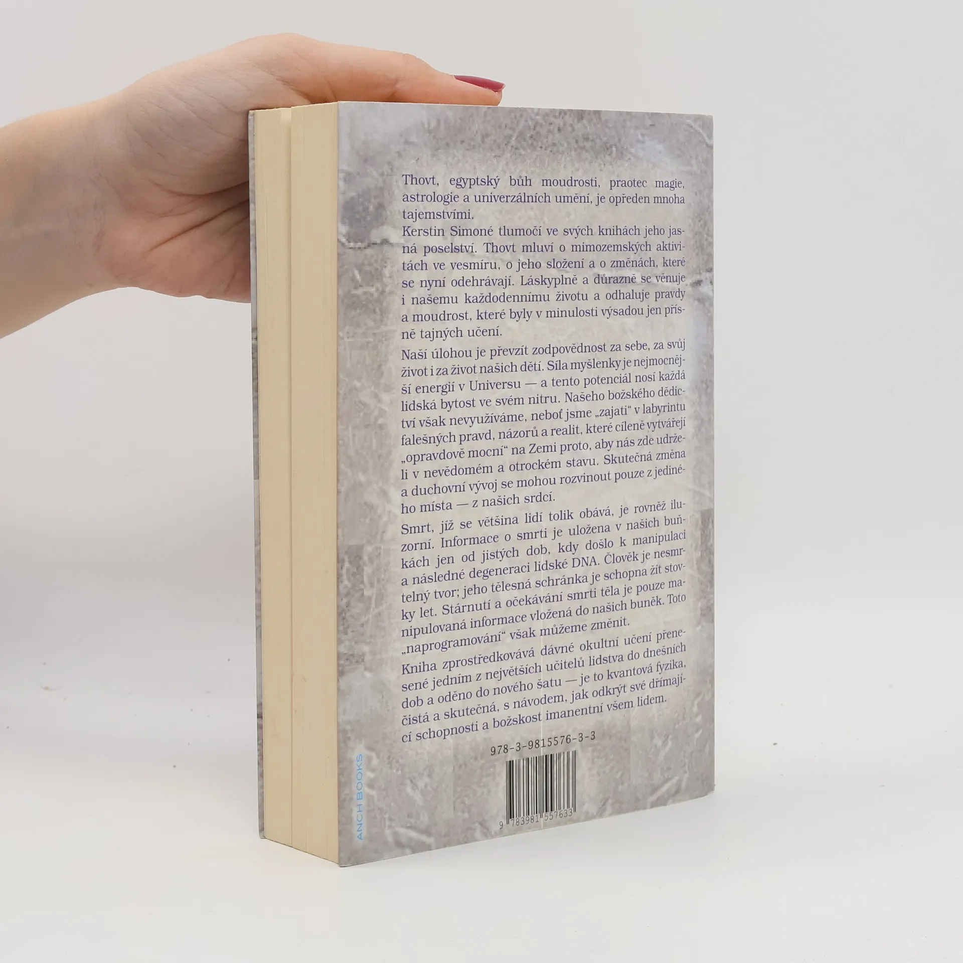 Thovt, egyptský bůh moudrosti, praotec magie, astrologie a univerzálních umění, je opředen mnoha tajemstvími. Kerstin Simoné tlumočí ve svých knihách jeho jasná poselství. Thovt mluví o mimozemských aktivitách ve vesmíru, o jeho složení a o změnách, které se nyní odehrávají. Láskyplně a důrazně se věnuje i našemu každodennímu životu a odhaluje pravdy a moudrost, které byly v minulosti výsadou jen přísně tajných učení. Naší úlohou je převzít zodpovědnost za sebe, za svůj život i za život našich dětí. Síla myšlenky je nejmocnější energií v Universu - a tento potenciál nosí každá lidská bytost ve svém nitru...