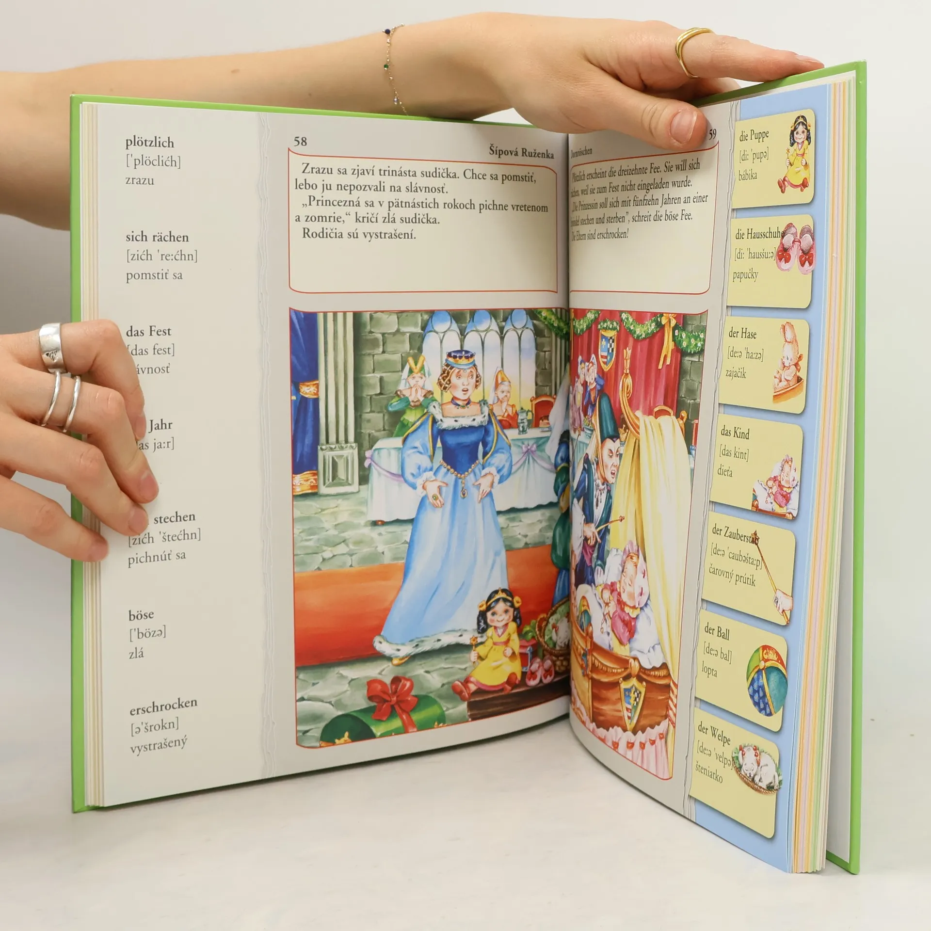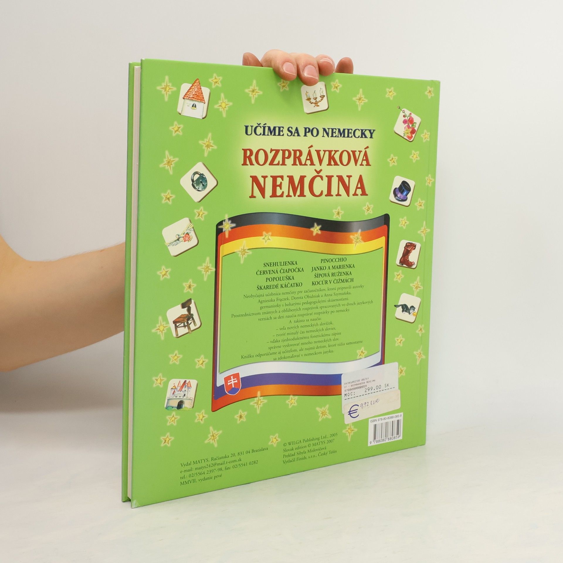 Neobyčajná učebnica nemčiny pre začiatočníkov, ktorú pripravili autorky s bohatými pedagogickými skúsenosťami. Prostredníctvom známych a obľúbených rozprávok spracovaných vo dvoch jazykových verziách sa deti naučia rozprávať rozprávky po nemecky. A takisto sa naučia: veľa nových nemeckých slovíčok, tvoriť minulý čas nemeckých slovies, vďaka zjednodušenému fonetickému zápisu správne vyslovovať mnoho nemeckých slov. Knižku odporúčame aj učiteľom, ale najmä deťom, ktoré túžia samostatne sa zdokonaľovať v nemeckom jazyku.