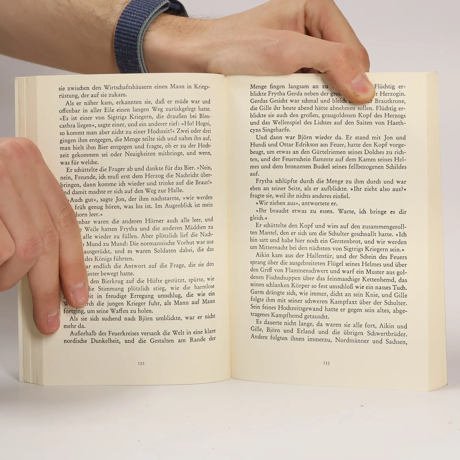 Frytha sieht die Fackeln hin und her schwanken, sieht die schlanken Flammen wachsen und zusammenschlagen, bis sie zu einer dichten Hecke aus Feuer werden, die aus dem trockenen Dachstroh in die Dunkelheit emporwächst. Die feindlichen Normannen haben den Hof ihres Vaters angezündet. In dieser Nacht beginnt die Flucht des kleinen Mädchens zusammen mit Grim, dem alten Schäfer, und Wigi, ihrem Hund. Die Flüchtlinge müssen einen langen Weg hinter sich bringen, ehe sie ihr Ziel, die Berge von Cumberland, erreichen. Bei Buthar, einem Herzog der Nordmänner, finden sie eine neue Heimat. Zusammen mit Björn wächst Frytha auf. Die Kinder und ihr Stamm erleben kriegerische Jahre, denn die Normannen unternehmen immer wieder neue Vorstöße ins Gebiet des Herzogs. Eines Tages schließlich suchen sie die Entscheidung. Das Heer des Roten Königs rückt heran. Die Nordmänner haben sich inzwischen zu der Einsicht durchgerungen, daß friedliche Unterwerfung für sie das beste ist. Ein niederträchtiger Verrat der Normannen verhindert dieses Vor-haben und läßt einen Kampf auf Leben und Tod entbrennen.