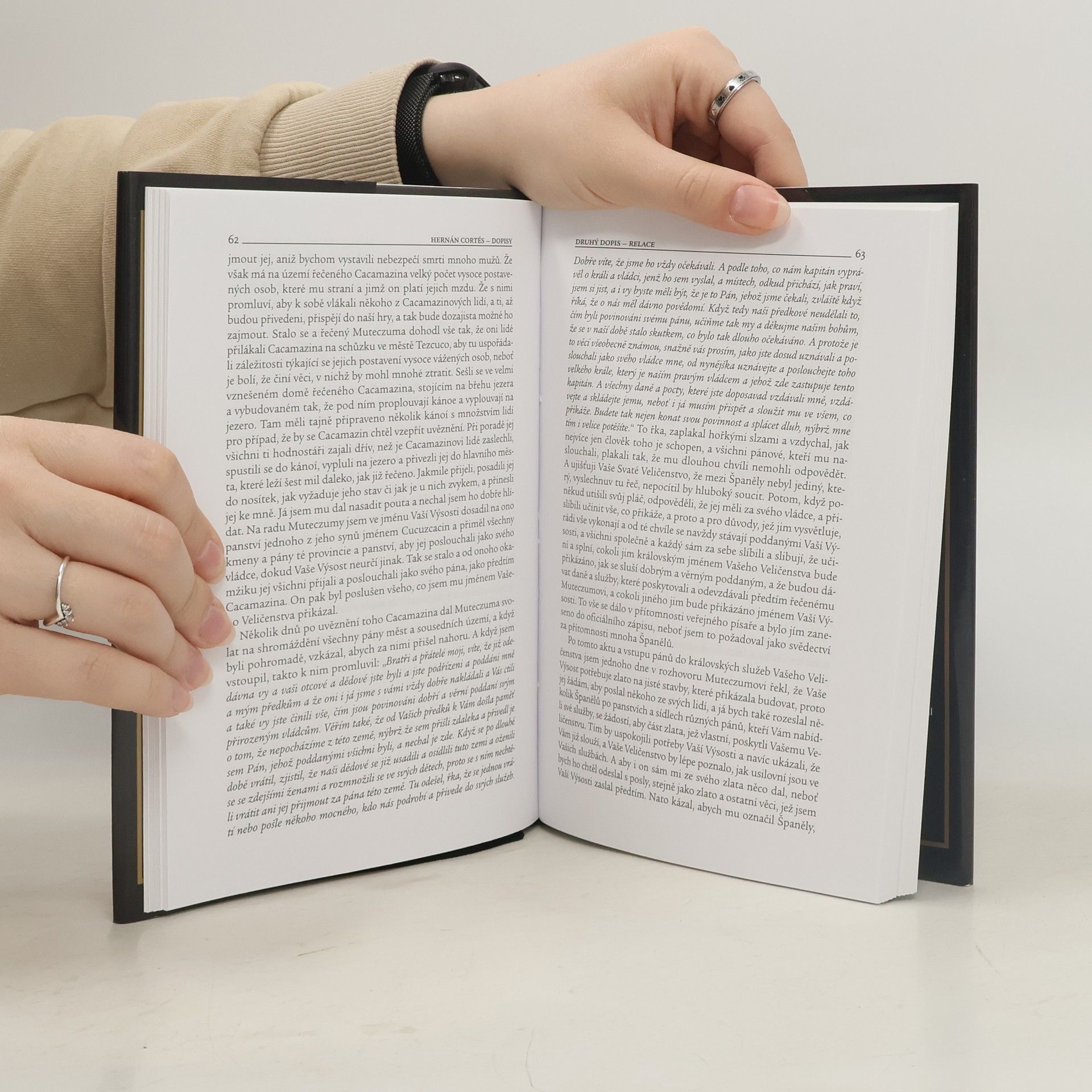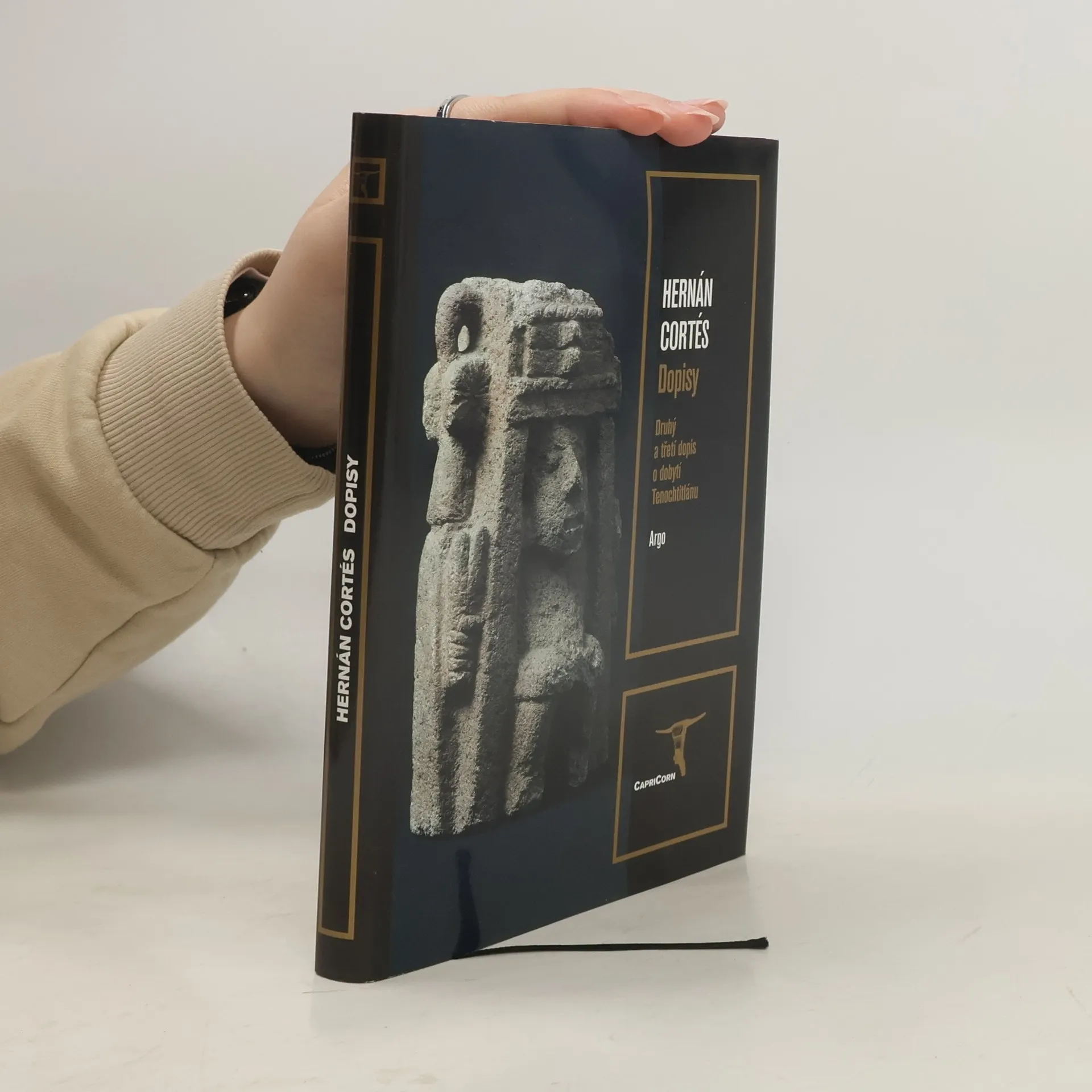 První novočeské vydání dvou nejobsáhlejších dopisů (Cartas de Relación) španělského conquistadora, dobyvatele říše Aztéků Hernána Cortése (1485–1547), které zaslal svému králi a císaři Karlu V., které ačkoli jsou pojímany jako zprávy o postupu výbojů, nelze jim upřít jistou literární hodnotu. Oba dopisy jsou nejen kultivovaně podaným svědectvím o historických událostech, k nimž došlo na počátku 16. století, a o dnes již zaniklé civilizaci. Vypovídají také o výjimečné osobnosti Hernána Cortése, jenž na rozdíl od většiny svých současníků dokázal nejen chápat, ale i popsat kulturu zcela odlišnou od kultury jeho rodného Španělska.