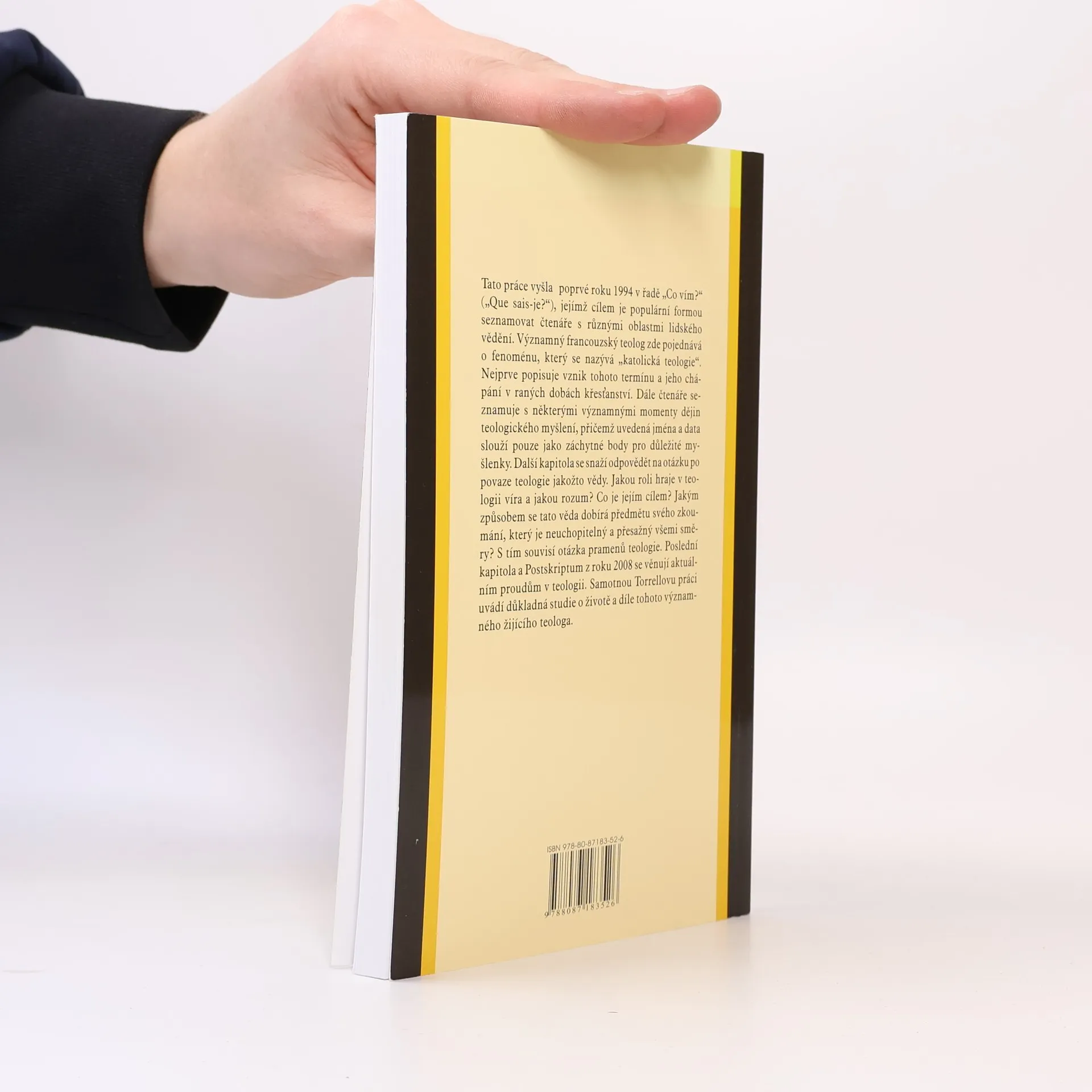 Tato práce vyšla poprvé roku 1994 v řadě "Que sais-je?" ("Co vím?"), jejímž cílem je populární formou seznamovat čtenáře s různými oblastmi lidského vědění. Významný francouzský teolog zde pojednává o fenoménu, který se nazývá "katolická teologie". Nejprve popisuje vznik tohoto termínu a jeho chápání v raných dobách křesťanství. Dále čtenáře seznamuje s některými významnými momenty dějin teologického myšlení, přičemž uvedená jména a data slouží pouze jako záchytné body pro důležité myšlenky. Další kapitola se snaží odpovědět na otázku po povaze teologie jakožto vědy. Jakou roli hraje v teologii víra a jakou rozum? Co je jejím cílem? Jakým způsobem se tato věda dobírá předmětu svého zkoumání, který je neuchopitelný a přesažný všemi směry? S tím souvisí otázka pramenů teologie. Poslední kapitola a Postskriptum z roku 2008 se věnují aktuálním proudům v teologii. Samotnou Torrellovu práci uvádí důkladná studie o životě a díle tohoto významného žijícího teologa.