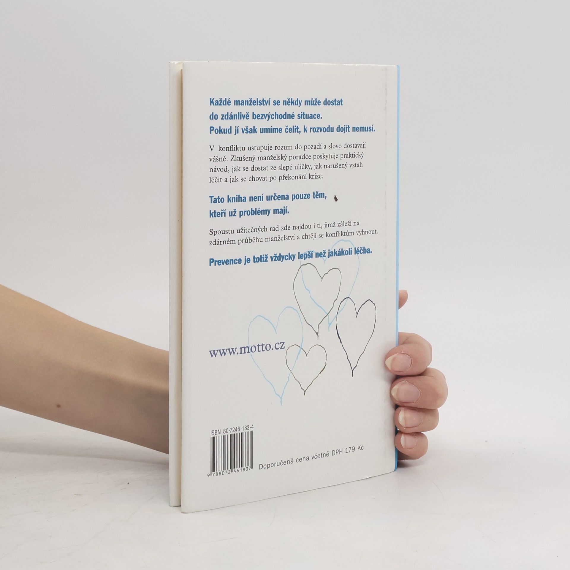 Každé manželství se může dostat do zdánlivě bezvýchodné situace. Jak takovým situacím předcházet? A jak jim případně čelit? V konfliktu ustupuje rozum do pozadí a slovo dostávají vášně. Zkušený manželský poradce poskytuje praktický návod,jak se dostat ze slepé uličky,jak narušený vztah léčit a jak se chovat po překonání krize. Tato kniha není určena pouze těm, kteří už problémy mají. Spoustu užitečných rad zde najdou i ti, jimž záleží na zdárném průběhu manželství a chtějí se konfliktùm vyhnout