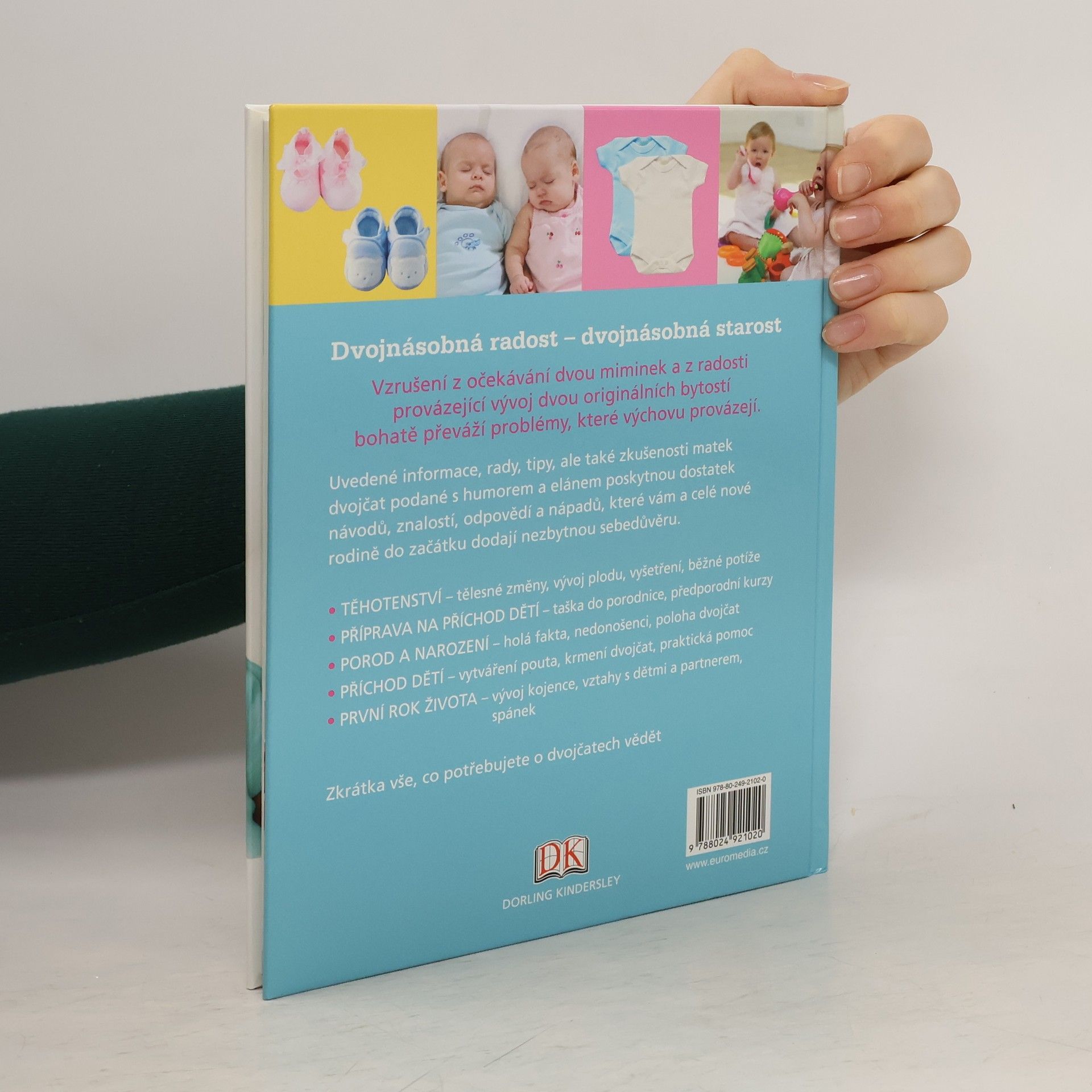 Praktický a povzbudivý průvodce těhotenstvím, porodem dvojčat a jejich prvním rokem života. Maminko, čekáte dvojčátka! Možná že po této větě zažijete šok, ale zároveň získáte vstupenku do nejlepšího klubu – do klubu maminek čekajících víc drobečků najednou. Knížka se určitě stane v průběhu těhotenství a prvního roku života miminek konejšivým objetím, upřímným stisknutím ruky a spolehlivým rádcem. Informace, rady a tipy vám poskytnou znalosti, odpovědi, vodítka a nápady, které vám a celé nové rodině do začátku dodají nezbytnou sebedůvěru.