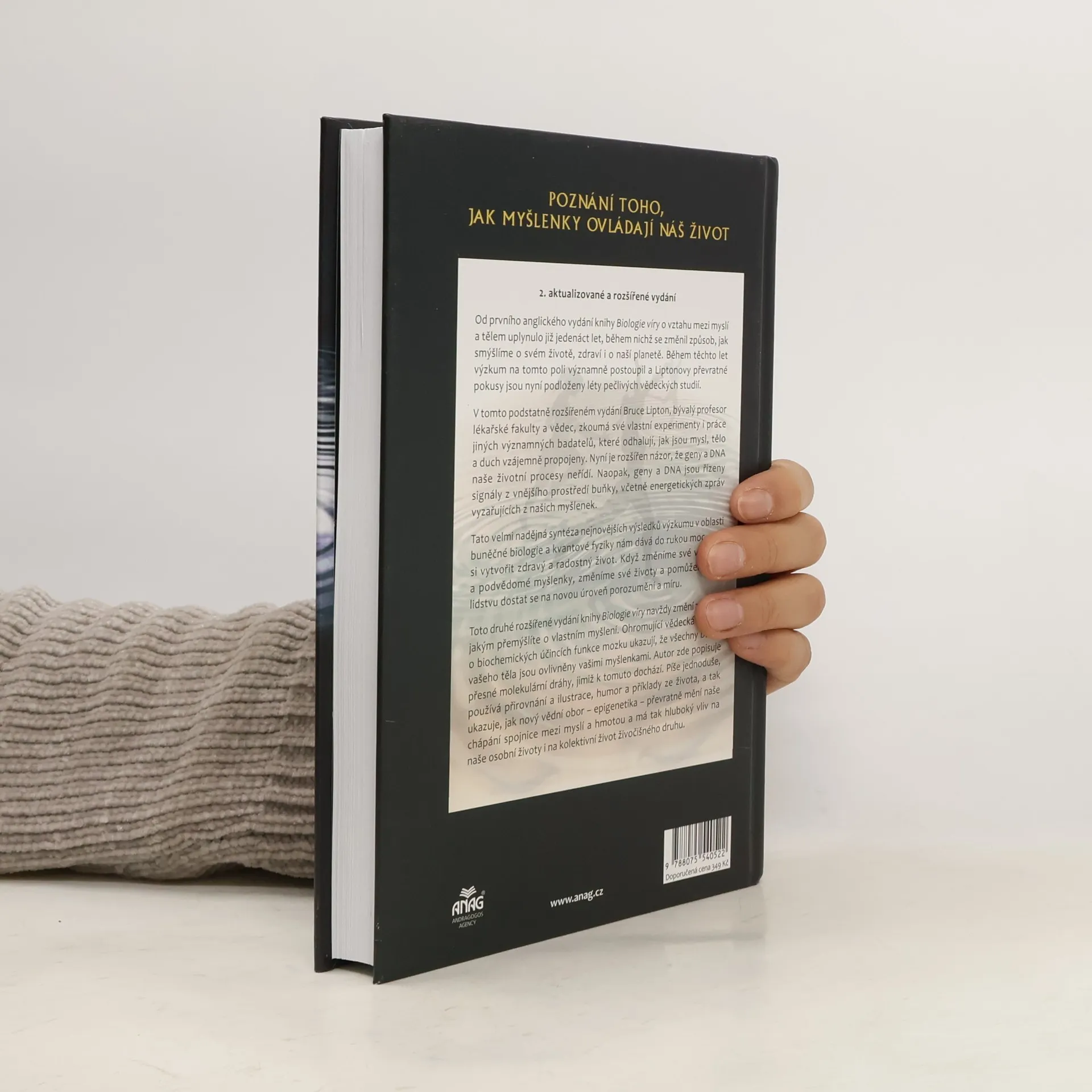 Přestože název knihy mnoho nenapoví, její obsah vás překvapí, či dokonce ohromí. Věřte, že tělo i mysl lze změnit pouhými myšlenkami Autor v knize Biologie víryodhaluje tajemství, ke kterému vědci dospěli teprve nedávno, a sice že můžeme změnit svou biologii – tedy naše tělo i mysl – díky svému uvědomělému chování a myšlenkám. Jak sám ověřil na vlastním životě i na mnoha pokusech, to, co nás zásadním způsobem ovlivňuje, není naše DNA, jak si dosud vědci mysleli, ale buněčná membrána, skrze niž se do buňky dostává vše potřebné, od výživy, léků až po stresové hormony. To je tedy ten „mozek buňky“, který pro nás má tak zásadní význam. Myslete pozitivně – pomůžete tak svému tělu Jsme-li v dobré pohodě, buňky dostávají vše potřebné pro svůj růst. Pokud však žijeme ve strachu a neustálém stresu, buňky chřadnou – jsou totiž v obranné pozici, která jim neumožňuje růst a rozvíjet se. Autor na mnoha zajímavých pokusech a také příkladech ze života přibližuje čtenáři fungování buňky, vliv buněčné membrány a DNA a dokazuje, že život není založen jen na „materiální“ informaci, hmotě, v tomto případě představované DNA, ale že jej ovlivňují a řídí nehmotné, energetické signály z prostředí mimo buňku.