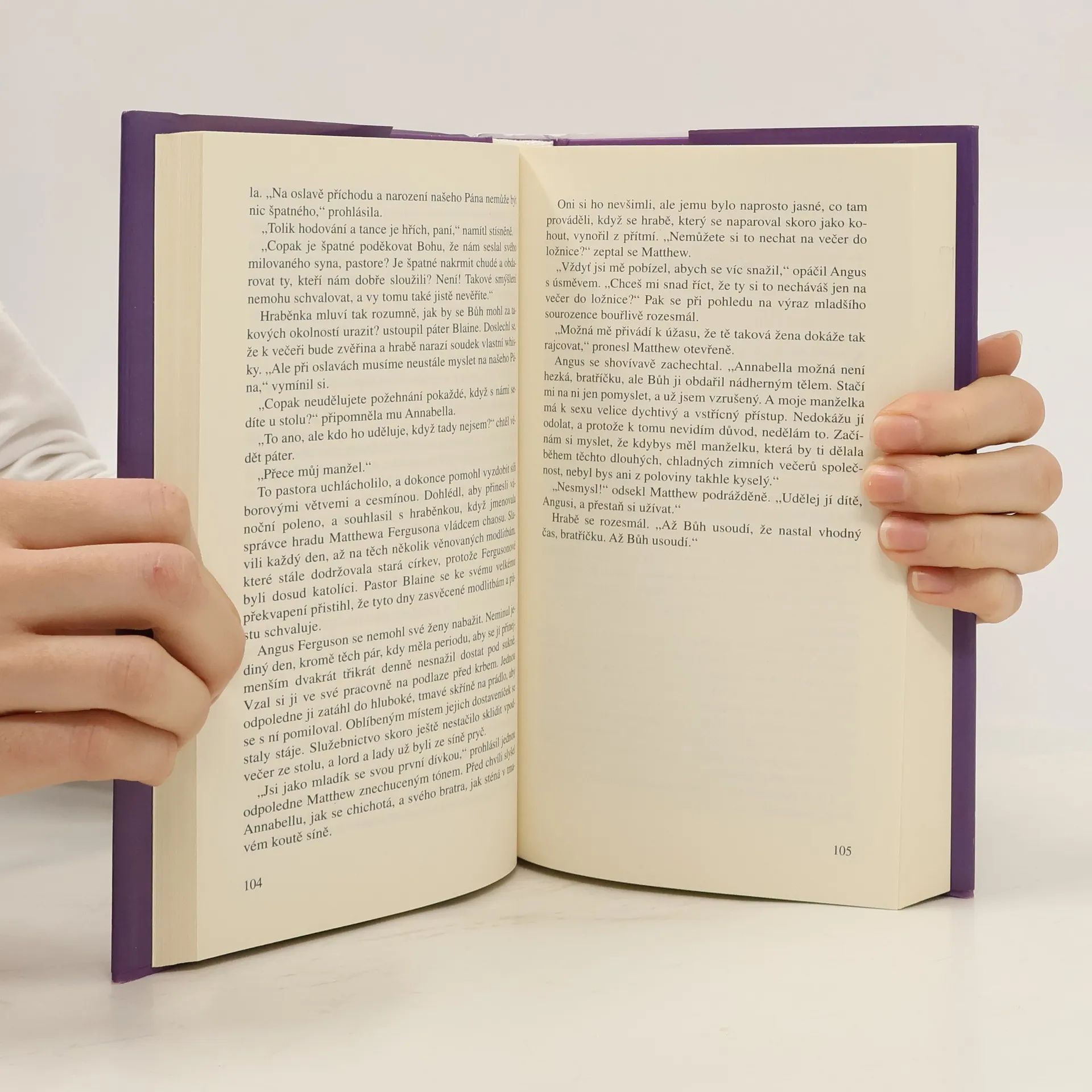 Angus Ferguson, hrabě z Duinu, považovaný za nejpohlednějšího muže na hranici, žije poklidným způsobem života, a aby neohrozil svůj malý rod, vyhýbá se věčných politickým pletichám svých sousedů. Teď, výměnou za kus půdy, po které dávno prahnul, získal za manželku Annabellu Bairdovou, nehezkou dceru statkáře z Rathu. Anguse kdysi zklamala krásná žena a on je rád, že se oženil s nehezkou Annabellou, protože věří, že mu bude věrná. Brzy zjistí, že za jejím skromným chováním se skrývá divoká kočka s jiskrou, která čeká na zažehnutí. Ale když přijmou pozvání ke dvoru skotské královny Marie, jejich život se zkomplikuje, protože se stanou součástí tamních intrik... Mariin nešťastný sňatek s jejím vzdáleným příbuzným lordem Darnley nebyl šťastný. Ještě hůř, vehnal ji do náruče jiného muže, Jamese Hepburna, okouzlujícího a mocného hraběte z Bothwellu. Když je Darnley zavražděn a Marie se velice brzy po jeho smrti provdá za Bothwella, královnini nepřátelé rozpoutají válku, která rozdělí Skotsko a vystaví zkoušce dávné přátelství hraběte z Duinu a Jamese Hepburna. Současně prověří pevnost vášnivého pouta mezi Agnusem a Annabellou tak, jak nikdy nepředpokládali...