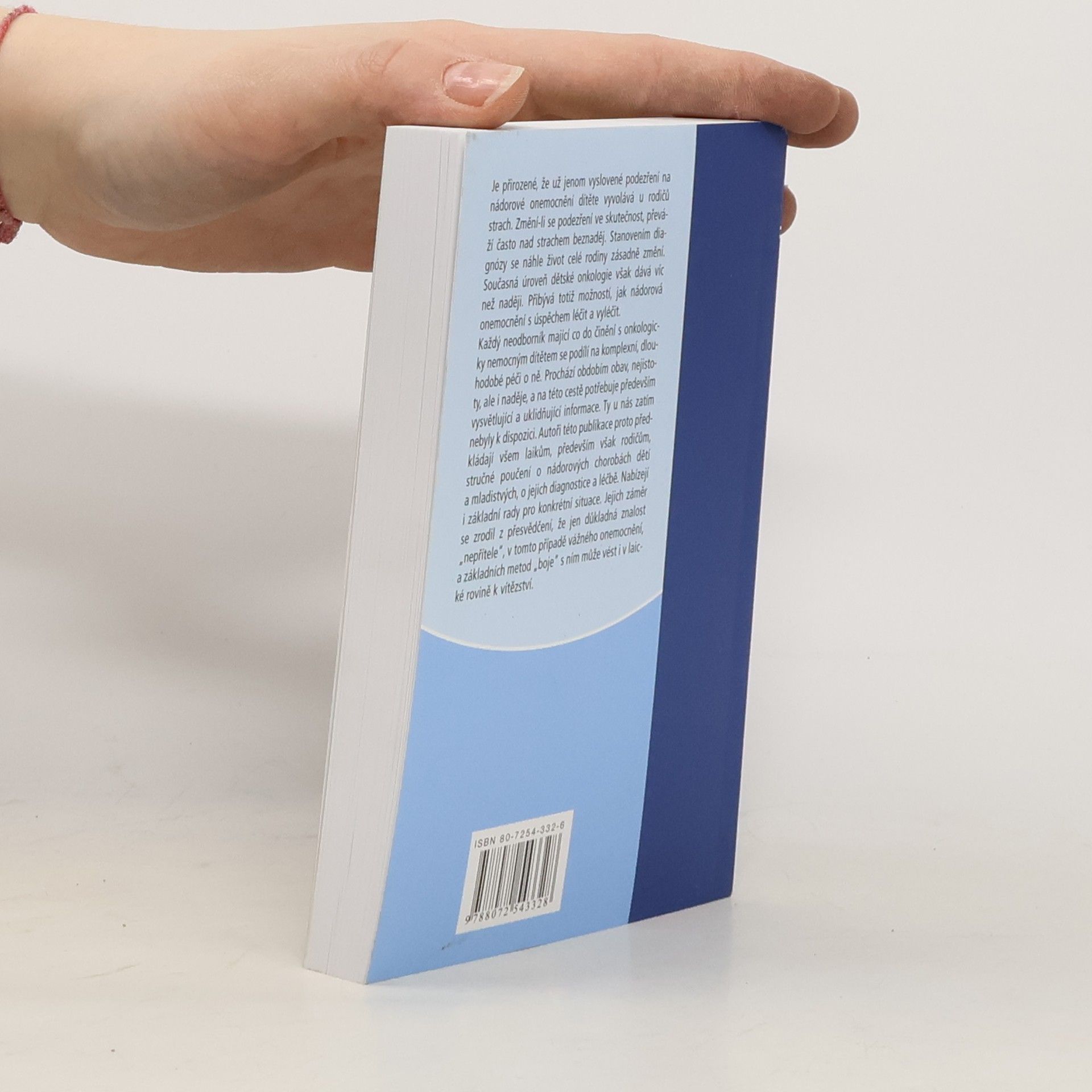 Je přirozené, že už jenom vyslovené podezření na nádorové onemocnění dítěte vyvolává u rodičů strach. Změní-li se podezření ve skutečnost, převáží často nad strachem beznaděj. Stanovením diagnózy se náhle život celé rodiny zásadně změní. Současná úroveň dětské onkologie však dává víc než naději. Přibývá totiž možností, jak nádorová onemocnění s úspěchem léčit a vyléčit.Každý neodborník mající co do činění s onkologicky nemocným dítětem se podílí na komplexní, dlouhodobé péči o ně. Prochází obdobím obav, nejistoty, ale i naděje, a na této cestě potřebuje především vysvětlující a uklidňující informace. Ty u nás zatím nebyly k dispozici. Autoři této publikace proto předkládají všem laikům, především však rodičům, stručné poučení o nádorových chorobách dětí a mladistvých, o jejich diagnostice a léčbě. Nabízejí i základní rady pro konkrétní situace. Jejich záměr se zrodil z přesvědčení, že jen důkladná znalost nepřítele, v tomto případě vážného onemocnění, a základních metod boje s ním může vést i v laické rovině k vítězství.