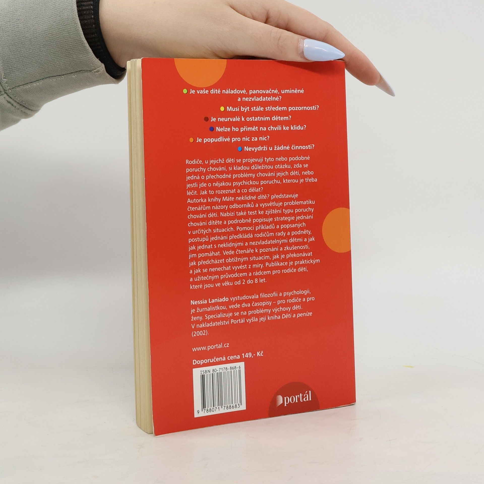 Rodiče, u jejichž dětí se projevují poruchy chování, si kladou důležitou otázku, zda se jedná o přechodné problémy chování jejich dětí, nebo jestli jde o nějakou psychickou poruchu, kterou je třeba léčit. Jak to rozeznat a co dělat? Autorka představuje čtenářům názory odborníků a vysvětluje problematiku chování dětí. Nabízí také test ke zjištění typu poruchy chování dítěte a podrobně popisuje strategie jednání v určitých situacích. Pomocí příkladů a popsaných postupů jednáníj předkládá rodičům rady a podněty, jak jednat s neklidnými a nezvladatelnými dětmi a jak jim pomáhat. Vede čtenáře k poznání a zkušenosti, jak předcházet obtížným situacím, jak je překonávat a jak se nenechat vyvést z míry. Publikace je praktickým a užitečným průvodcem a rádcem pro rodiče dětí, které jsou ve věku od 2 do 8 let.