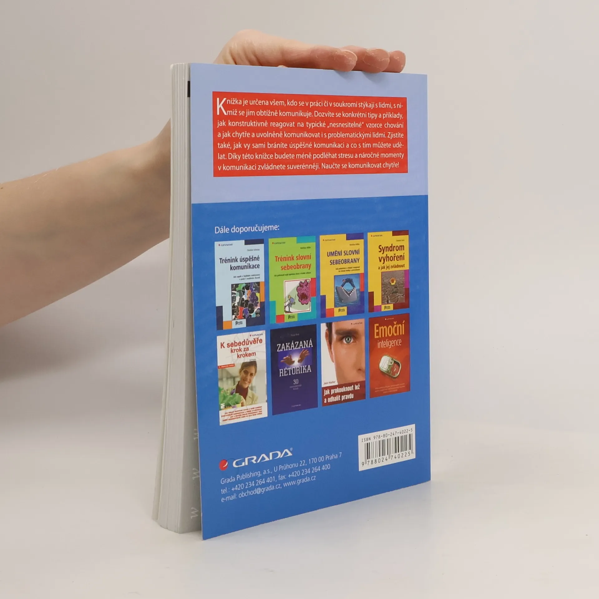 Knížka je určena všem, kdo se v práci či v soukromí stýkají s lidmi, s nimiž se jim obtížně komunikuje. Dozvíte se konkrétní tipy a příklady, jak konstruktivně reagovat na typické "nesnesitelné" vzorce chování a jak chytře a uvolněně komunikovat i s problematickými lidmi. Zjistíte také, jak vy sami bráníte úspěšné komunikaci a co s tím můžete udělat. Díky této knížce budete méně podléhat stresu a náročné momenty v komunikaci zvládnete suverénněji. Naučte se komunikovat chytře!