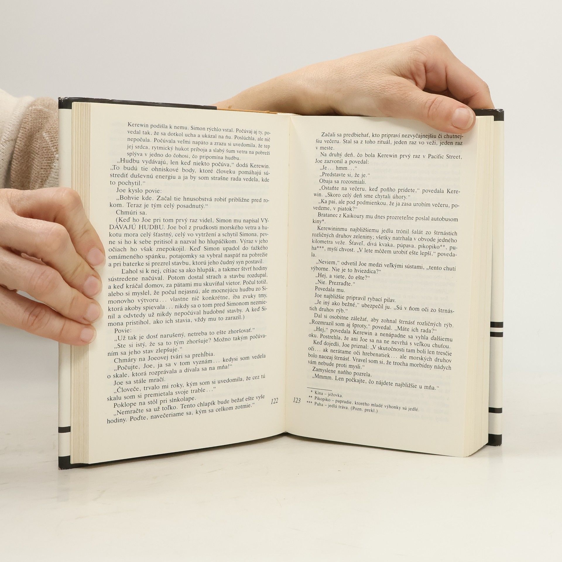 Majstrovsky napísaný príbeh bohatej maliarky, prostého maorijského muža a nemého malého chlapca-najdúcha, ktorého vyplavilo more po stroskotaní lode. Na pozadí fascinujúcej novozélandskej prírody sa odohráva dej poprepletaný maorijskými reáliami, autorka na mnohých miestach používa jazyk domorodcov a súčasťou knihy je množstvo odkazov na maorijské mýty a rituály. Dielo bolo v roku 1985 ocenené prestížnou Bookerovou cenou.