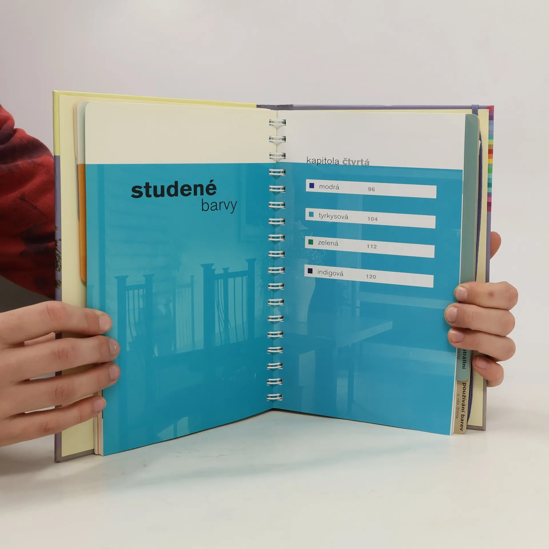 Praktická příručka, jejíž pomocí lze barevně navrhnout či doladit jakýkoli interiér. Celkem 128 různých barev, rozdělených do skupin na teplé, studené a neutrální, je předvedeno vždy v patnácti kombinacích. Stránky s volitelnou barvou stropu, stěn, zařízení a podlahy poskytují názornou představu o různých barevných řešeních interiéru. Perforovaný vzorník je užitečnou pomůckou při nákupu bytových doplňků. Kniha dobře poslouží jak laikům, tak i bytovým návrhářům a dekoratérům.