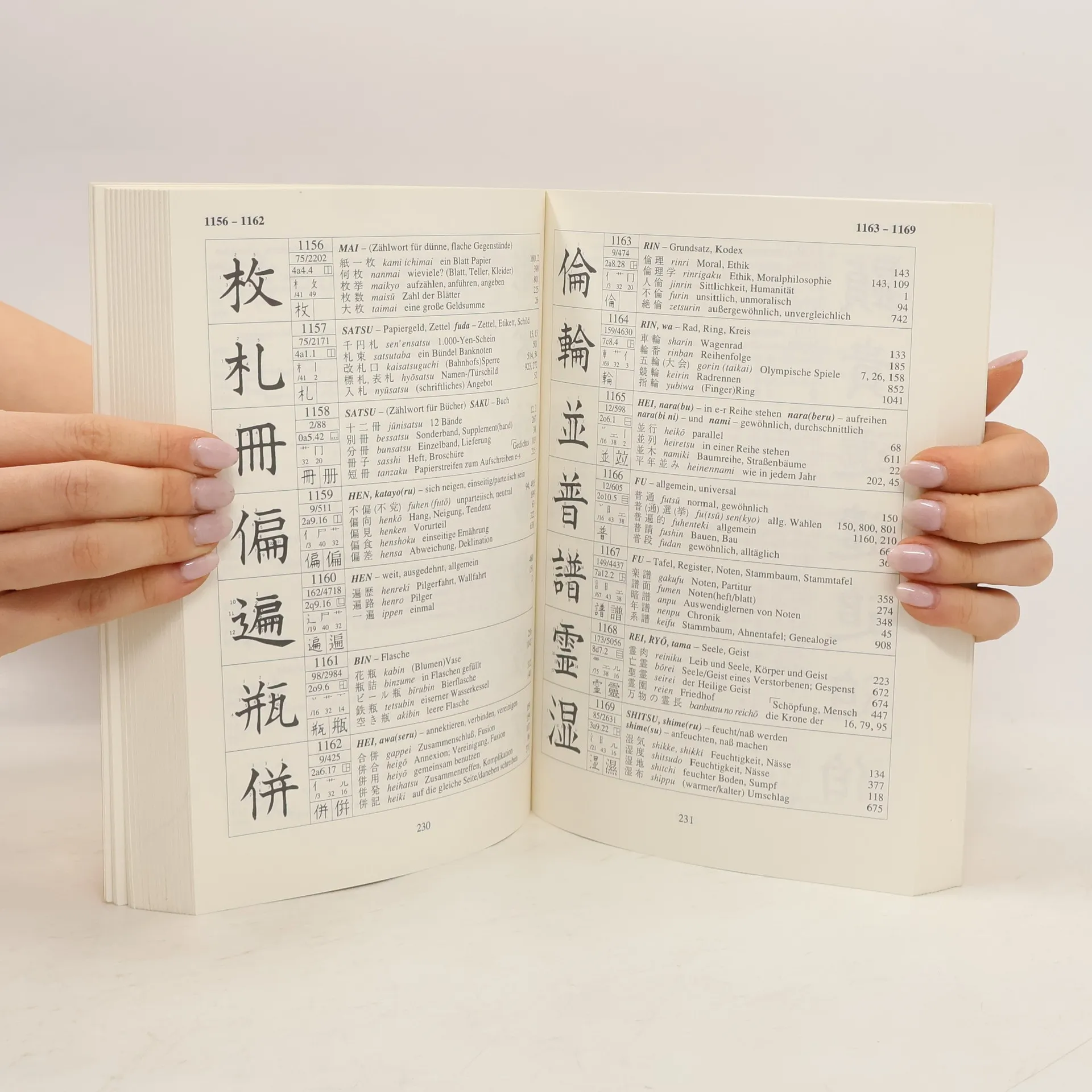 Die komplett überarbeitete und um 284 amtlich genehmigte Vornamen-Kanji erweiterte Neuauflage dieses Titels (Vorauflage 1980, 3. Auflage: ID 48/83) erscheint nun als zweibändige Ausgabe, Band 2 ist ein deutsch-japanisch/japanisch-deutsches Wörterbuch. Band 1 beinhaltet 1. eine allgemeine Einführung in die Schrift, 2. das den Hauptteil ausmachende Zeichenlexikon und 3. die den Titel erschließenden 4 Register und 20 Übersichtstabellen. Nach den von der japanischen Regierung ausgewiesenen 1945 Joyo Kanji angeordnet, werden die Schriftzeichen mit folgenden Erläuterungen ausgestattet: Strichfolgen, Zeichenbestandteile, Verweise zu Auflistungen in differenzierteren Kanji-Lexika, mehr als 4000 Lesungen (nach Hepburn-Transkription) und deren Übersetzungen; außerdem sind etwa 9000 Komposita angeführt. Als einzig vergleichbarer Titel, wenngleich nach anderem Ordnungsprinzip, ist R. Hartmann "Japanisch-Deutsches Zeichenlexikon" (ID 35/95) mit ca. 5800 Zeichen und mehr als 33000 Komposita zu nennen. Auch für das Selbststudium empfohlen