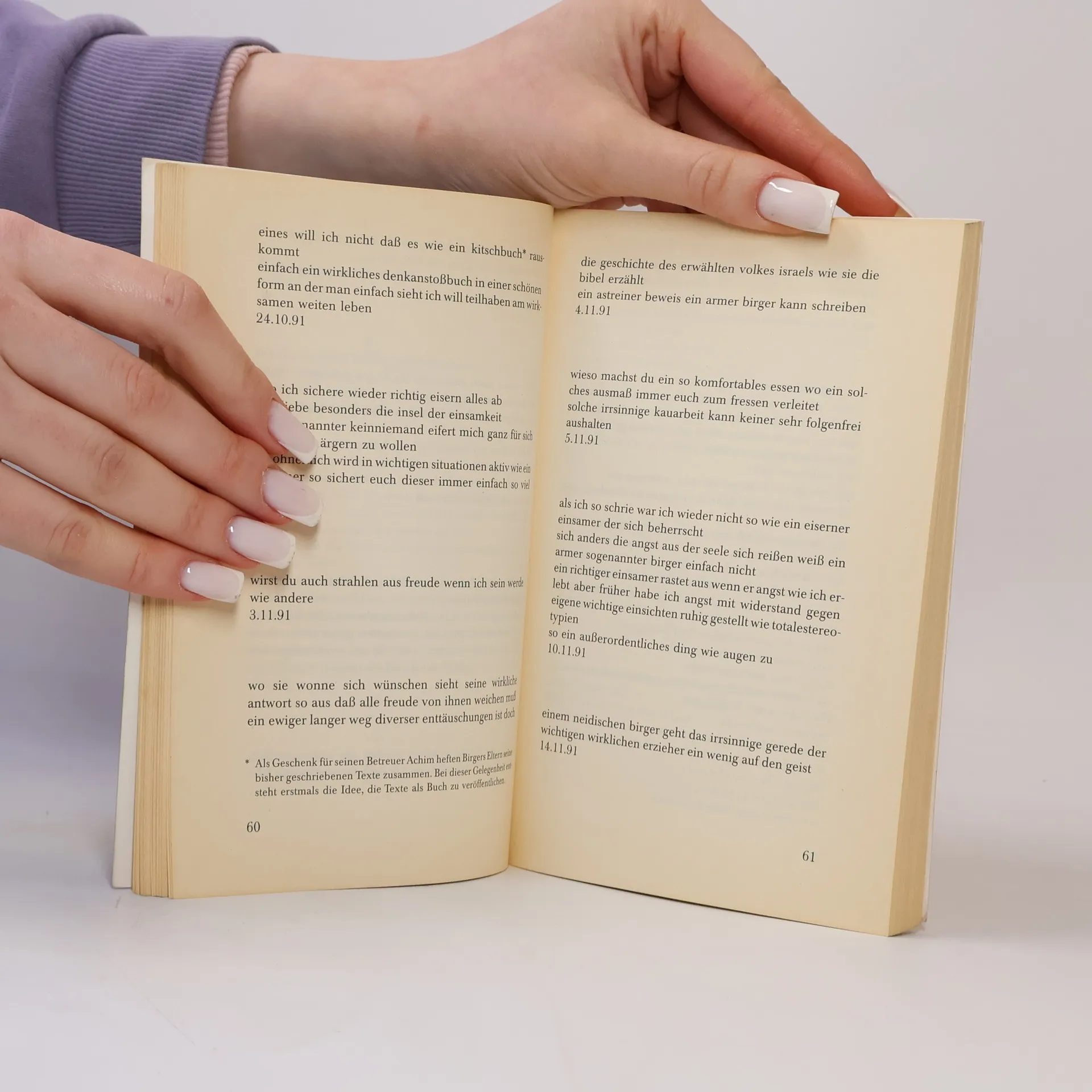 Ein Zwanzigjähriger, schwer autistisch behindert und seit seinem zweiten Lebensjahr verstummt, schreibt Texte von bizarrer Schönheit. Sie lassen uns in die "welt der kastenmenschen" blicken und zeugen von den unsäglichen Qualen, denen der Autor in seinem autistischen Kerker ausgesetzt ist.