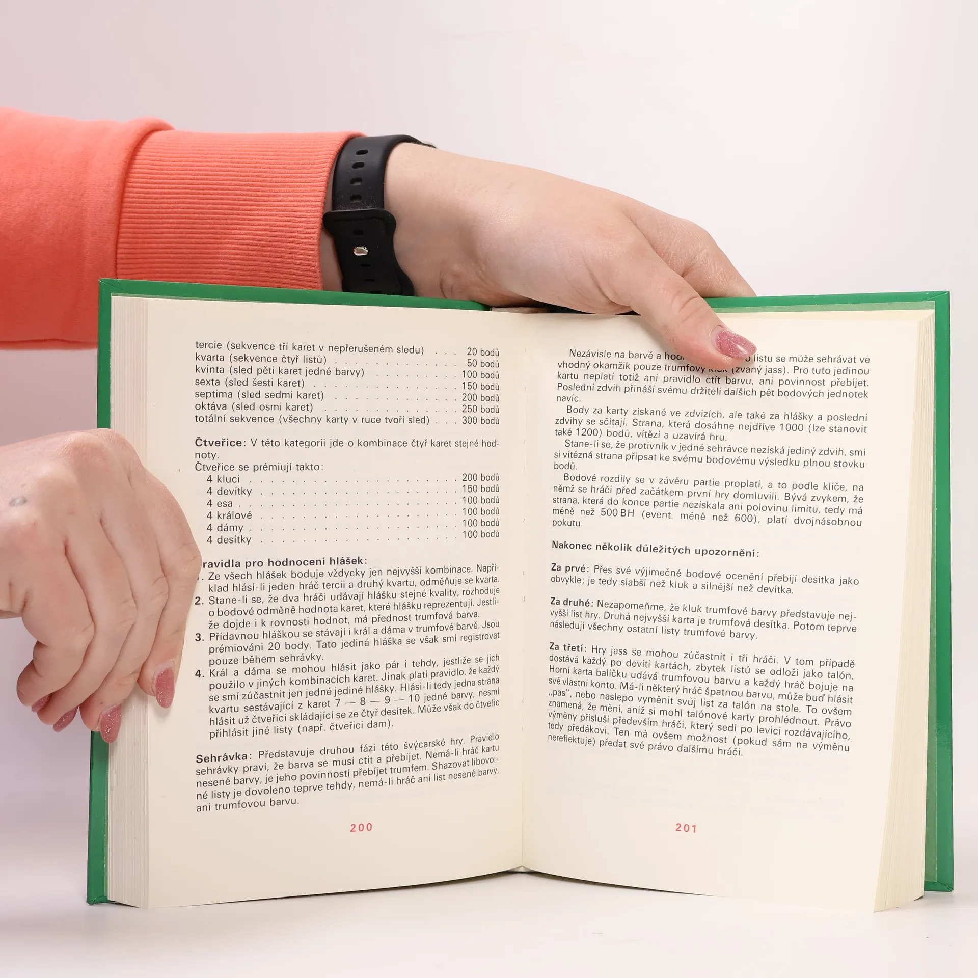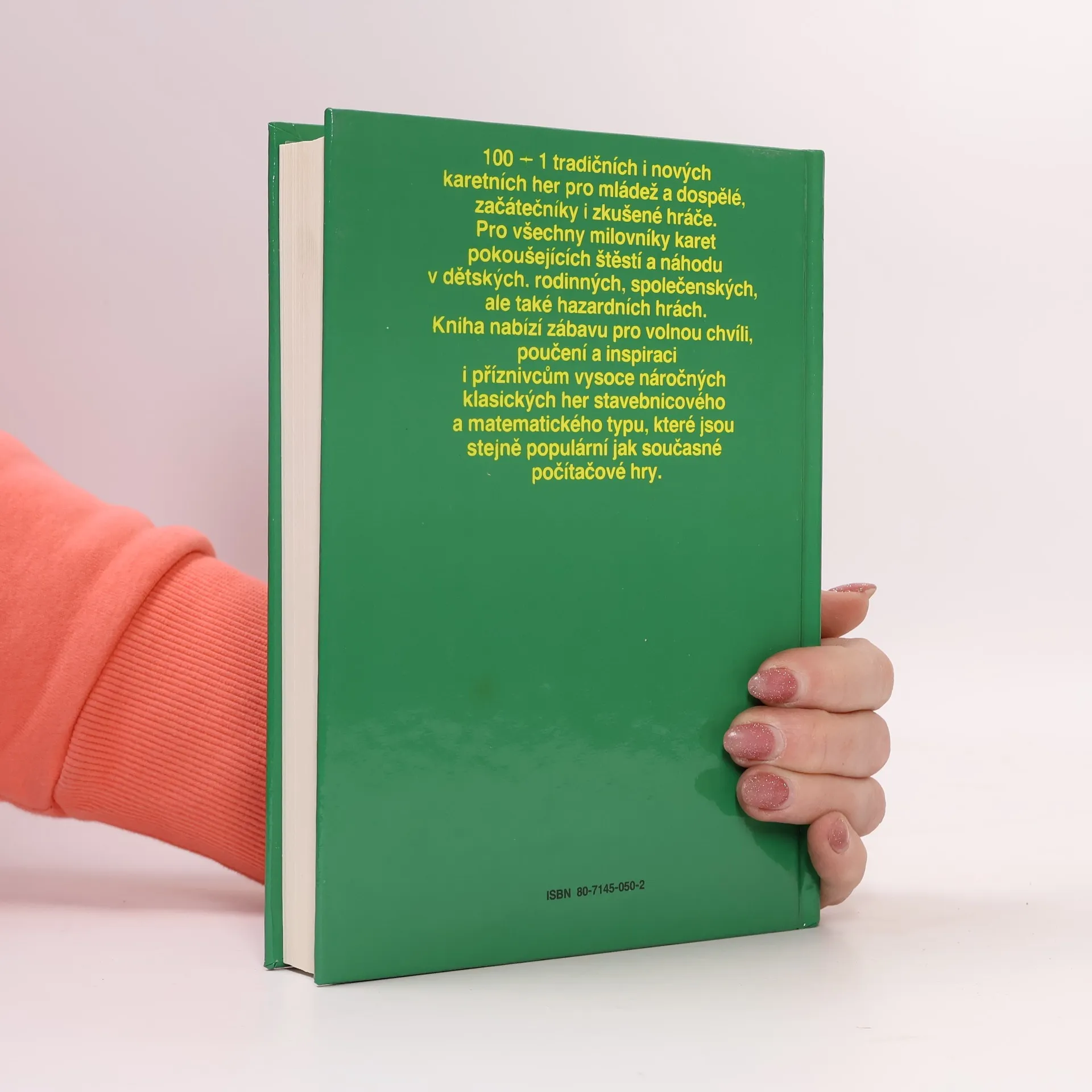 Kniha obsahuje pět souborů karetních 122 her hazardem počínaje, přes lehké společenské hry až k náročným partiím typu bridže. Jde o upravené texty, původního vydání z roku 1969. Kniha je vázaná, autoři pokročili i ve výkladu partií a vydavatel si dal záležet na kvalitě sehrávek. Kvalitě vydání přispěl i karetní slovníček a základní pravidla karetních her vůbec.