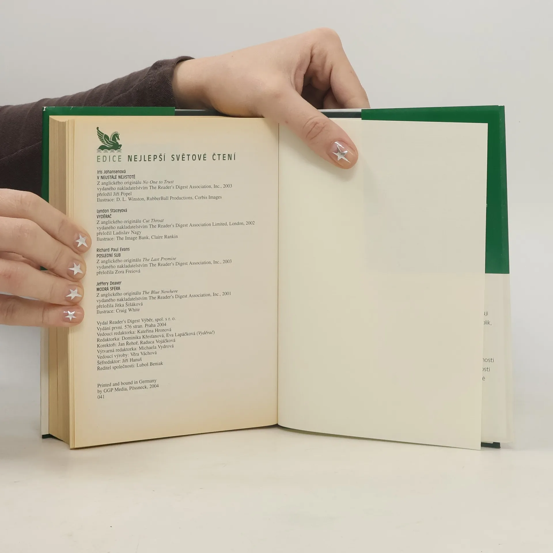 Nejlepší světové čtení. V neustálé nejistotě. Vyděrač. Poslední slib. Modrá sféra, Jeffery Deaver, Iris Johansen, Richard Paul Evans, Lyndon Stacey