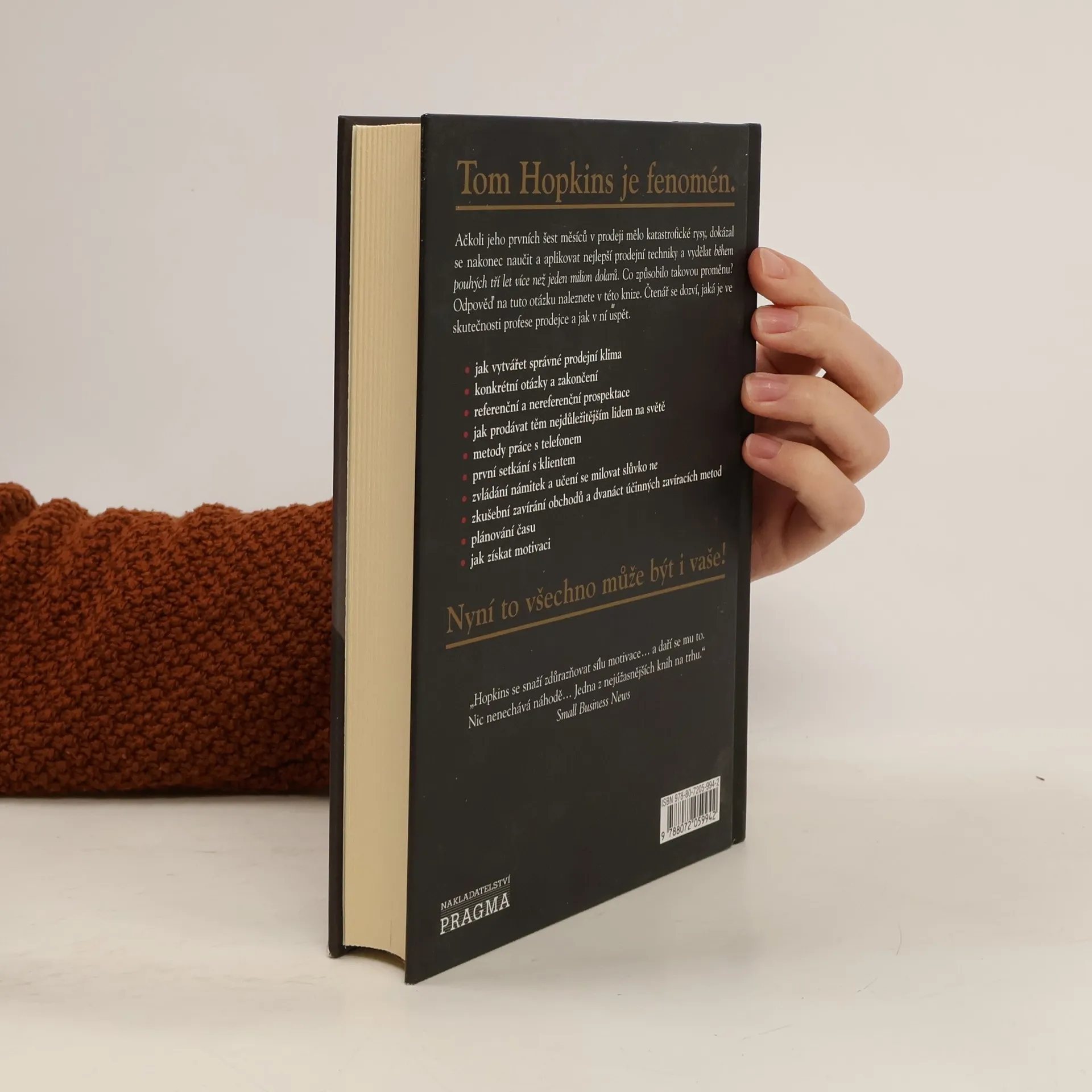 Ačkoli jeho prvních šest měsíců v prodeji mělo katastrofické rysy, dokázal se nakonec naučit a aplikovat nejlepší prodejní techniky a vydělat během pouhých tří let více než jeden milion dolarů. Co způsobilo takovou proměnu? Odpověď na tuto otázku naleznete v této knize. Čtenář se dozví, jaká je ve skutečnosti profese prodejce a jak v ní uspět, jak vytvářet správné prodejní klima,… konkrétní otázky a zakončení,… referenční a nereferenční prospektace,… jak prodávat těm nejdůležitějším lidem na světě,… metody práce s telefonem,… první setkání s klientem,… zvládání námitek a učení se milovat slůvko ne,… zkušební zavírání obchodů a dvanáct účinných zavíracích metod,… plánování času,… jak získat motivaci…