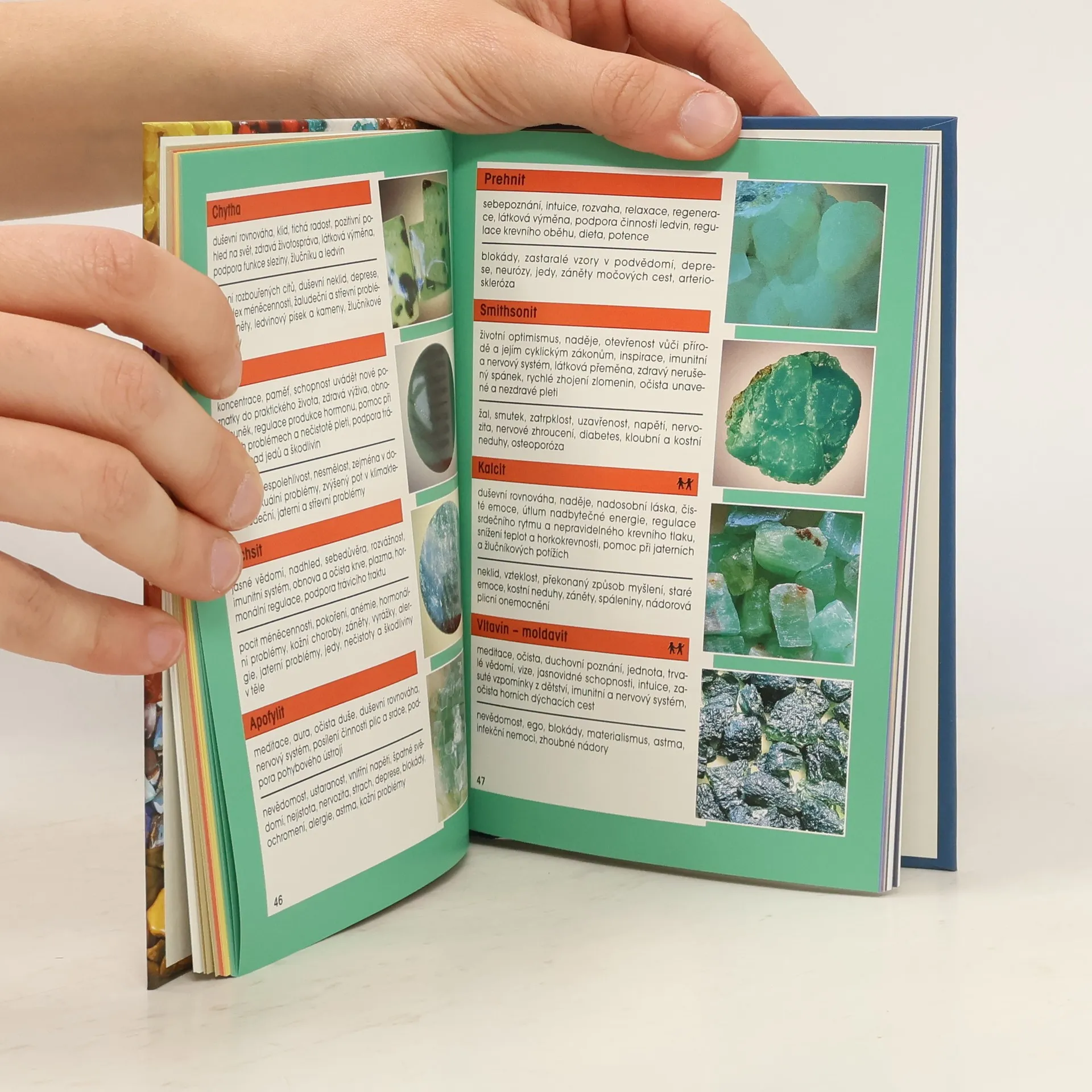 Tato kniha slouží k rychlé orientaci v léčivých kamenech. 328 druhů je seřazeno podle barev a současně čaker, jež barvám odpovídají. Tam, kde existuje více barevných odrůd, je kámen zařazen buď podle barvy nejtypičtější, nebo ve skupině kamenů vícebarevných. U každého kamene se uvádí jeho možné léčivé působení duchovní, duševní, mentální a zdravotní.