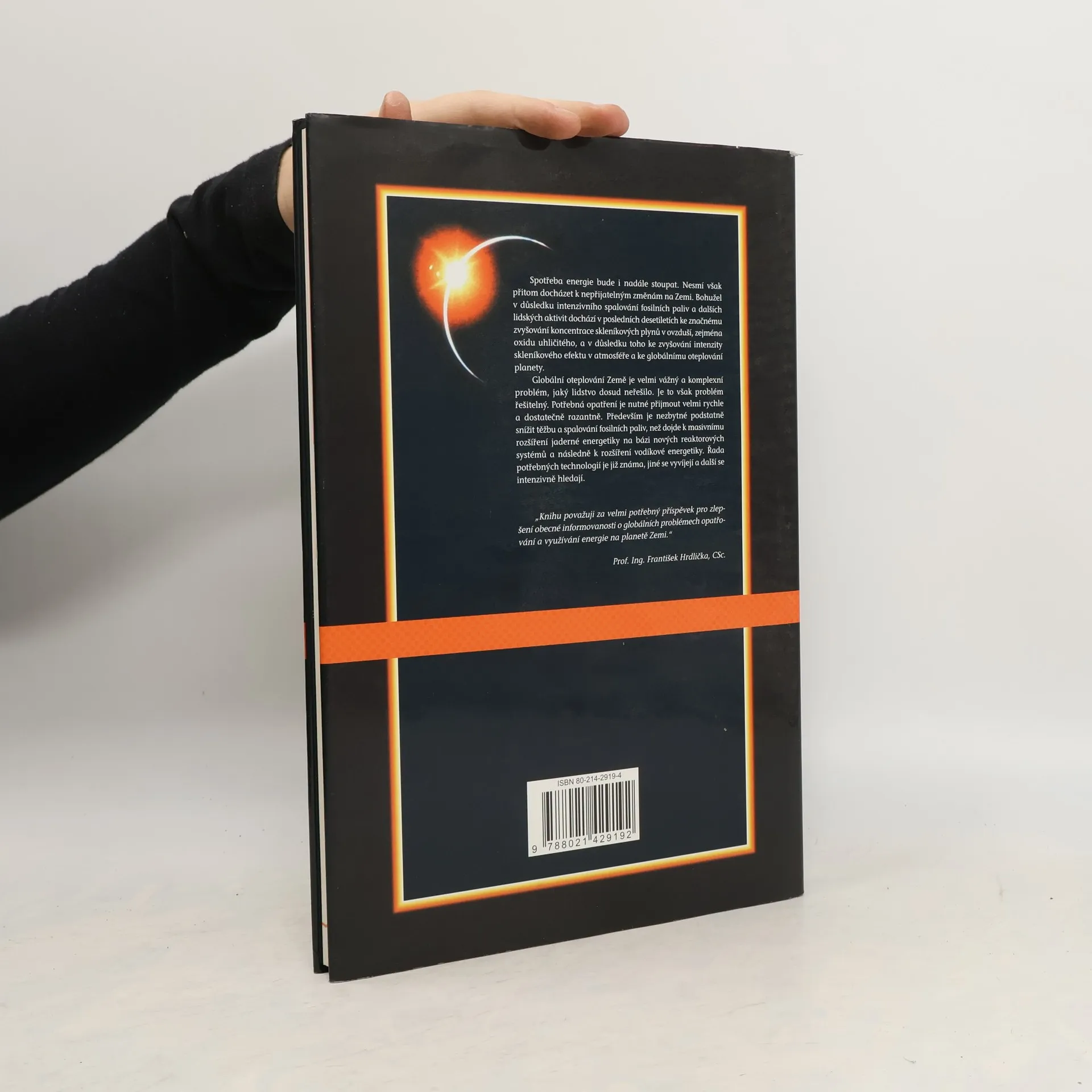 Kniha přináší zamyšlení nad tématy – energetika a životní prostředí, spotřeba energie a její vývoj, energetické zdroje na Zemi, vývoj podmínek na Zemi, uhlík, fosilní paliva, skleníkový efekt a globální oteplování planety, jaderná energetika, vodíková energetika i autorova hodnocení dopadů při zajišťování energie na životní prostředí. “Uhlí vznikalo zhruba po dobu 300 milionů let. Nyní se člověk snaží tuto zásobu uhlíku a sluneční energie akumulovanou postupně po tak dlouhou dobu uvolnit, energii využít a oxid uhličitý vznikající spalováním vypustit do atmosféry. Tím dochází k závažnému zvyšování koncentrace kysličníku uhličitého v ovzduší a ke globálnímu oteplování planety. Je možné považovat za přijatelné, aby tyto zásoby vznikající po dobu 300 milionů let byly člověkem využity během 300 let s velmi významnými dopady na životní prostředí?“
