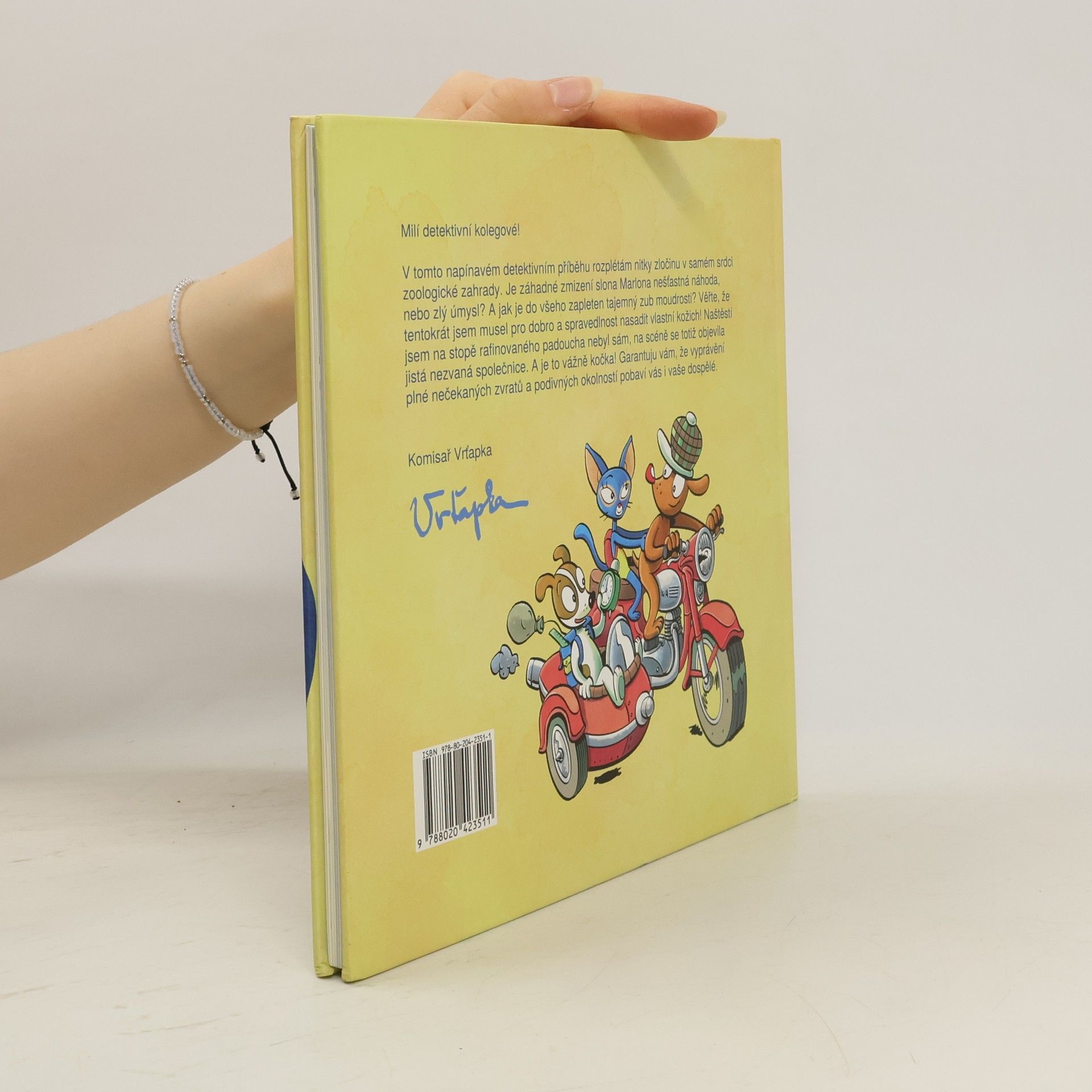 Slavný hrdina tentokrát přichází s něčím opravdu nevídaným! První dobrodružný příběh komisaře Vrťapky v podobě dětské detektivky s komiksovými ilustracemi. V napínavém příběhu Vrťapka rozplétá nitky zločinu v samém srdci zoologické zahrady. Je záhadné zmizení slona Marlona nešťastná náhoda, nebo zlý úmysl? A jak je do všeho zapleten tajemný zub moudrosti? Mějte na paměti, že komisař Vrťapka tentokrát pro dobro a spravedlnost nasazuje vlastní kožich. Naštěstí není věhlasný detektiv na stopě rafinovaného padoucha sám, v patách má nezvanou společnici. A je to vážně kočka! Příběh plný nečekaných zvratů a podivných okolností pobaví malé i velké čtenáře. Tak vzhůru za případy, ať nám nevychladne stopa!