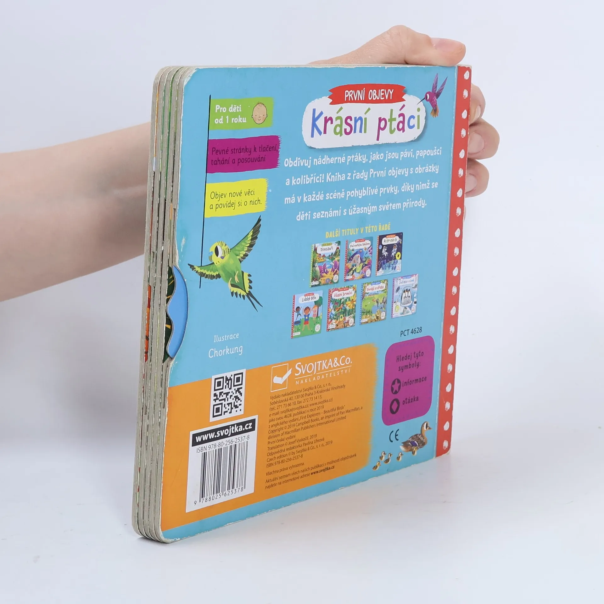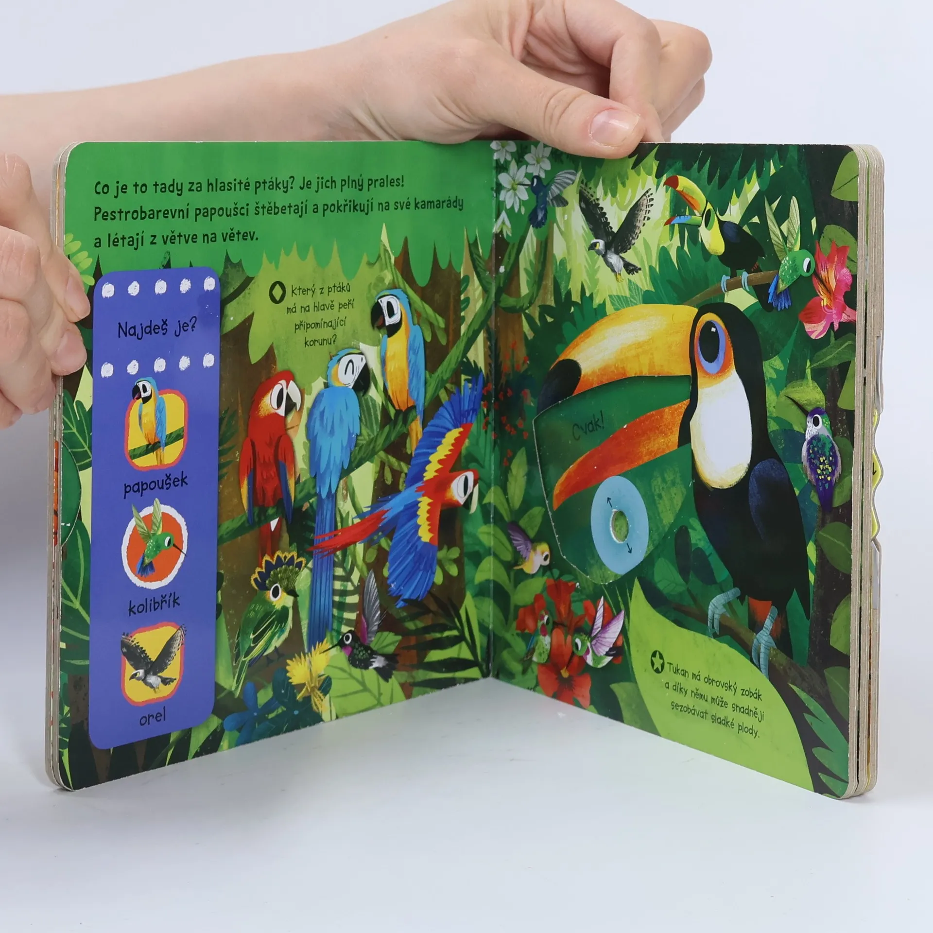 Mají křídla, peří, dvě nohy a zobáky. Ptáci jsou si tolik podobní, a přitom je každý ptačí druh úplně jiný! Vidíš ty rozdíly? Papoušci hrají všemi barvami, mají dlouhé ocasy a často i šošolku, půvabná labuť je celá bílá s dlouhým krkem, tukan tě zaujme svým obrovským zobákem a pták emu má silné dlouhé nohy, díky kterým dokáže běžet mnohem rychleji než ty! Prohlédni si tuto knížku a seznam se s nimi. Vydej se k rybníku, do zámeckého parku, do lesa i do pralesa. Kniha z řady První objevy je bohatě ilustrovaná a v každé scéně má pohyblivé prvky, díky nimž se děti seznámí s úžasným světem ptačí říše a zároveň si procvičí jemnou motoriku.