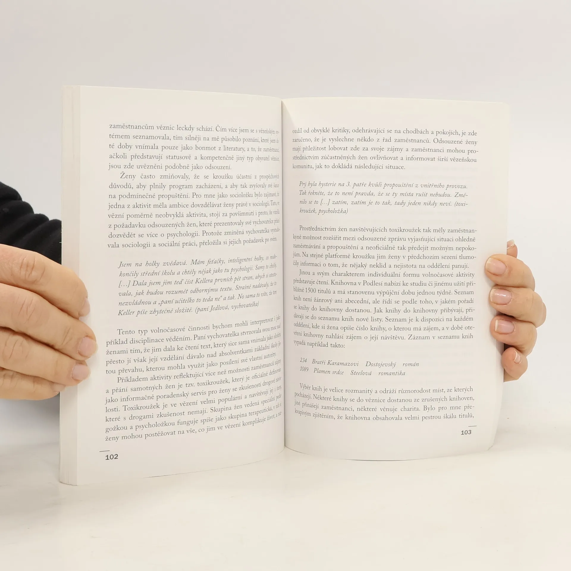 Kniha nabízí etnografický popis ženské věznice Podlesí, založený na rozhovorech s odsouzenými ženami, rozhovorech se zaměstnankyněmi a zaměstnanci vězení a v neposlední řadě na pozorování celé organizace. Empirický materiál je v textu interpretován z genderové perspektivy. Autorka se soustředí zejména na vězeňskou každodennost, na formální i neformální vztahy, které ženy v prostředí této instituce navazují. Podstatná část knihy se věnuje sexualitě ve vězení, především lesbickým a pseudorodinným vztahům. Na příkladu vězení autorka ukazuje, jakým způsobem gender funguje jako jedna ze základních struktur organizujících společnost