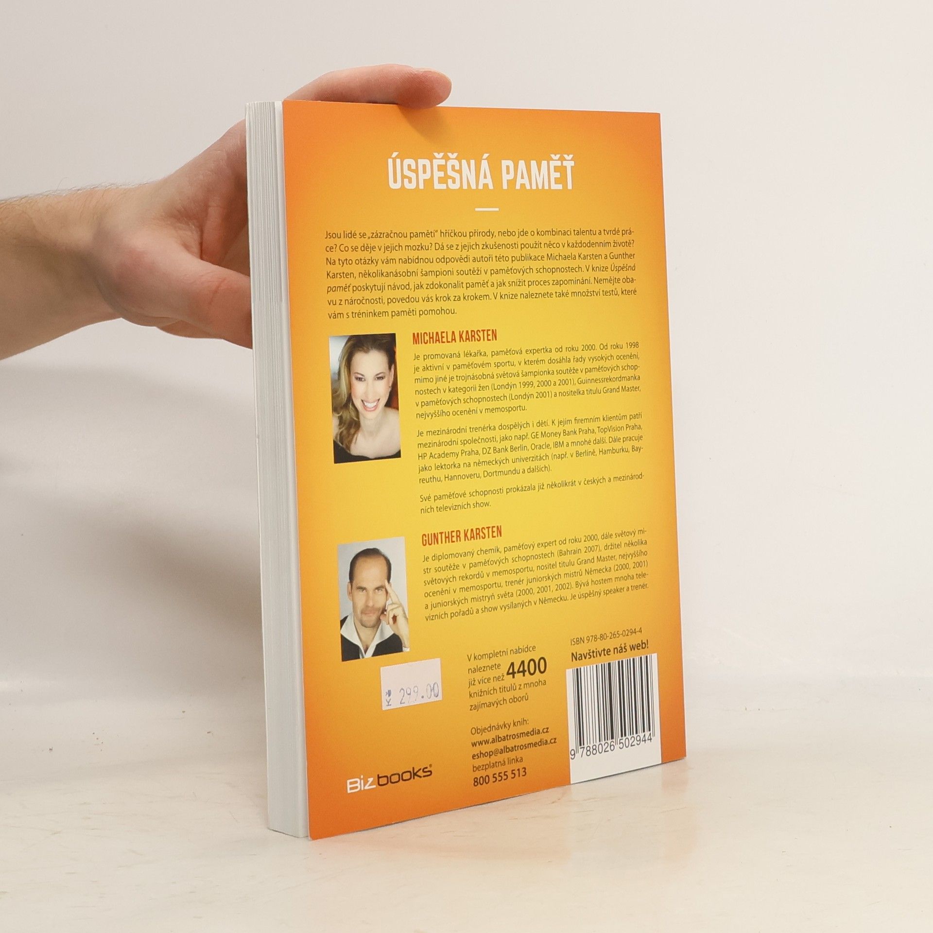 Trénujte svůj mozek se světovými šampiony Jsou lidé se „zázračnou pamětí“ hříčkou přírody, nebo jde o kombinaci talentu a tvrdé práce? Co se děje v jejich mozku? Dá se z jejich zkušenosti užít něco v každodenním životě? A kdo by se nebál oslabování paměti ve stáří. Na tyto otázky vám mohou odpovědět lidé, kteří mají s problematikou zkušenosti – například autoři této knihy Michaela a Gunther Karsten, několikanásobní šampioni soutěží v paměťových schopnostech. V knize Úspěšná paměť poskytují návod, jak na sobě pracovat v mládí i jak se bránit stárnutí. Nemějte obavu z náročnosti, povedou vás krok za krokem.