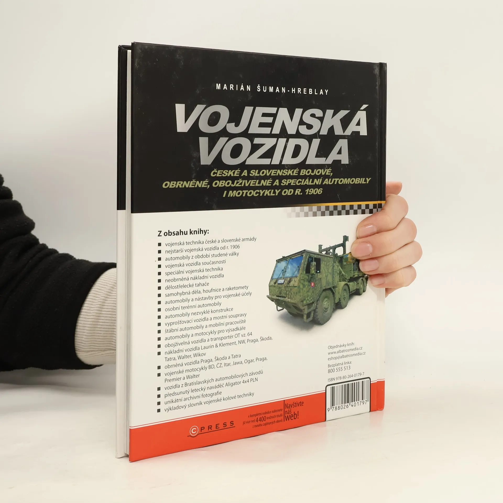 Kniha přináší bohatou historii kolových vojenských automobilů a motocyklů, vyrobených na území bývalého Československa, resp. v České a Slovenské republice od počátku 20. století do současnosti. Publikace popisuje a na mnoha unikátních fotografiích zobrazuje obrněná i neobrněná vozidla, dělostřelecké tahače, samohybná děla, vyprošťovací vozidla, obojživelné a terénní automobily, speciální vojenskou techniku, vojenské motocykly i ojedinělé automobily nezvyklé konstrukce.