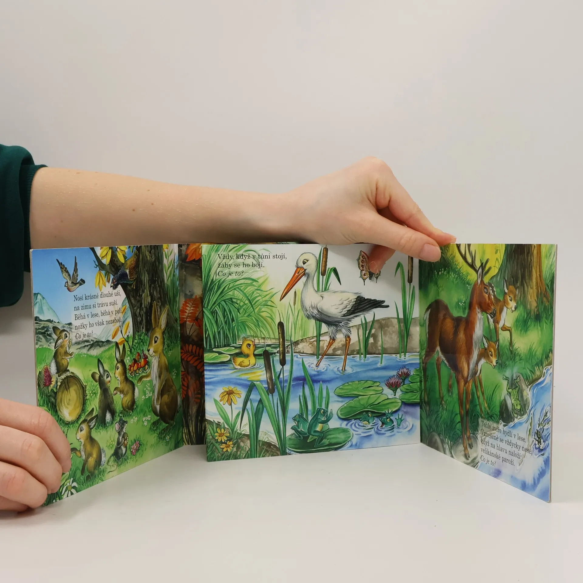 Leporelo Kdo bydlí v lese? seznámí nejmenší čtenáře se životem deseti zvířátek z lesa. Na každé stránce čeká děti kromě názorných obrázků veršovaná hádanka.