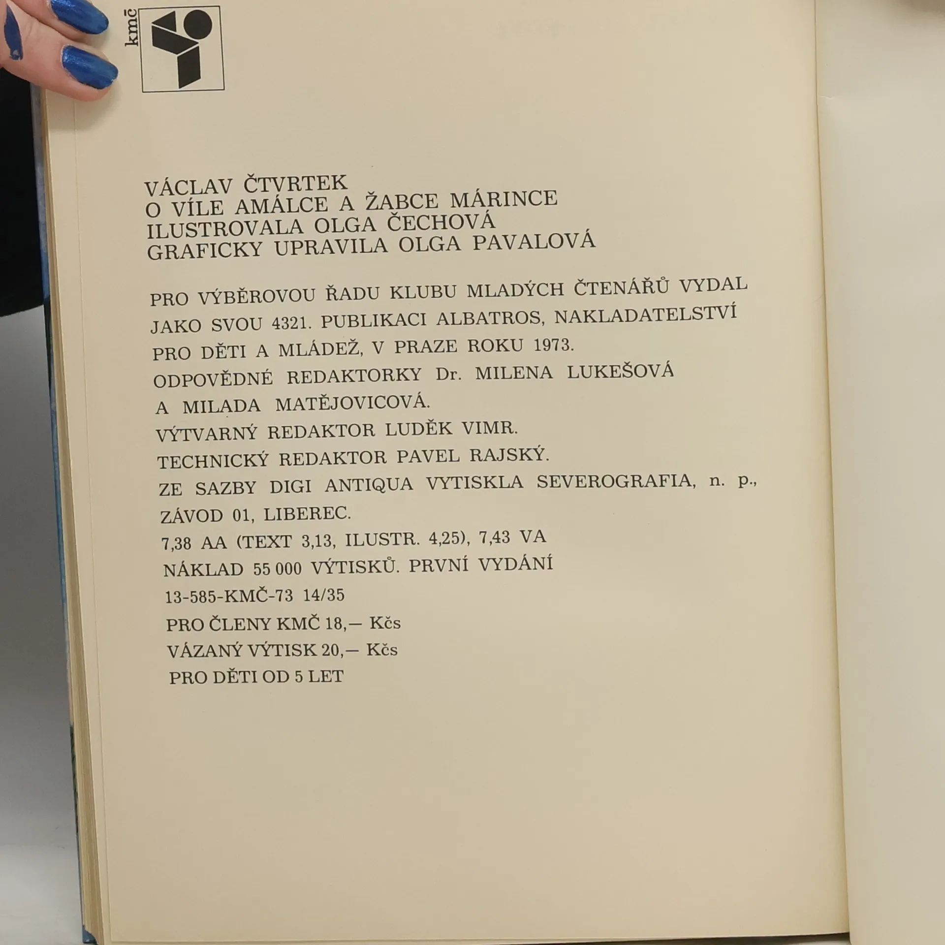 O víle Amálce a žabce Márince, Václav Čtvrtek, Olga Čechová