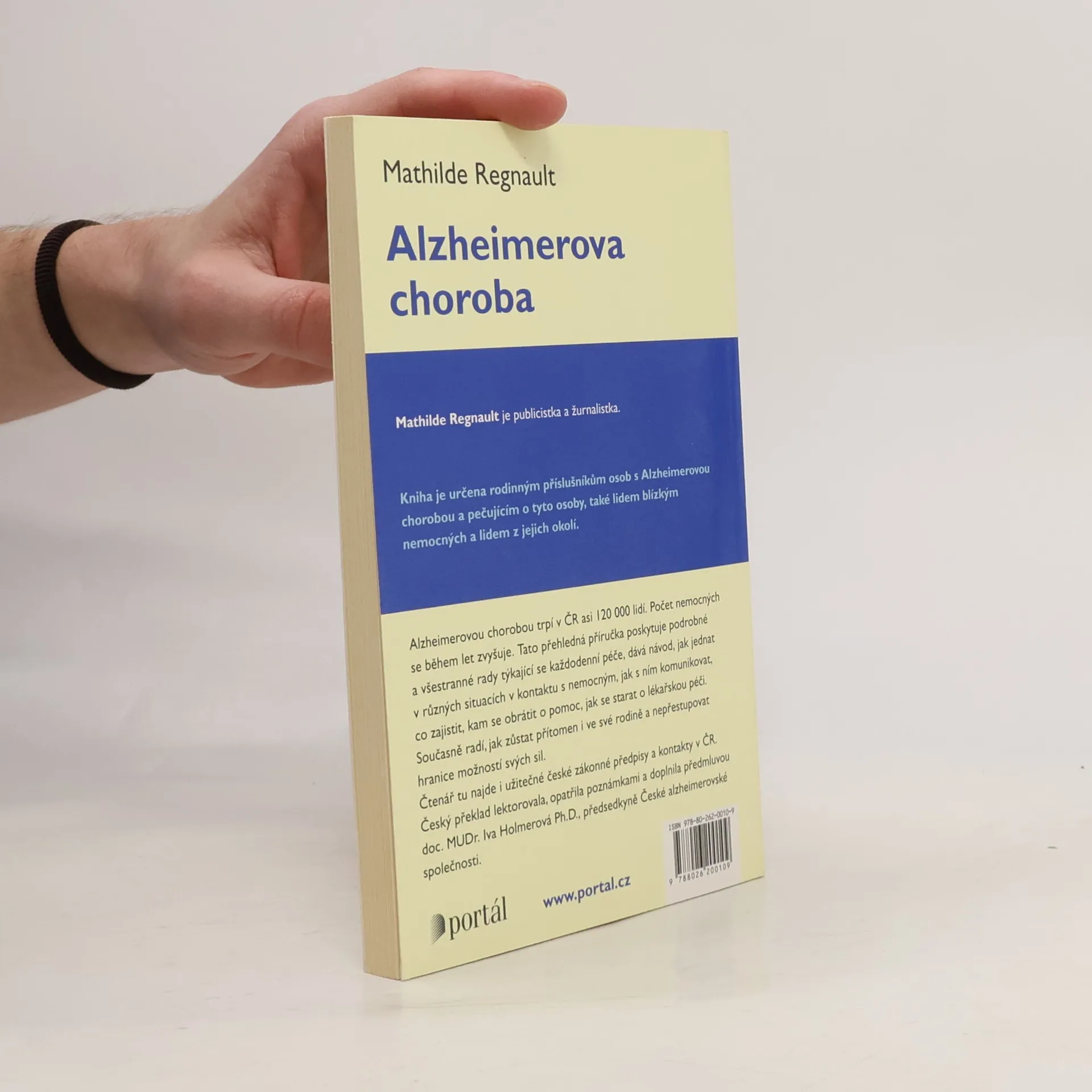 Průvodce pro blízké nemocných. Alzheimerovou chorobou trpí v České republice asi 120 000 lidí. Počet nemocných se během let zvyšuje. Tato přehledná příručka nabízí pomoc příbuzným a blízkým těch, kteří touto nemocí trpí. Poskytuje podrobné a všestranné rady týkající se každodenní péče, dává návod, jak jednat v různých situacích v kontaktu s nemocným, jak s ním komunikovat, co zajistit, kam se obrátit o pomoc, jak se starat o lékařskou péči. Zároveň radí, jak zůstat přítomen i ve své rodině a nepřestupovat hranice možností svých sil. Čtenář tu najde i užitečné české zákonné předpisy a kontakty v ČR. Český překlad lektorovala a doplnila předmluvou doc. MUDr. Iva Holmerová, Ph.D., předsedkyně České alzheimerovské společnosti. Kniha je určena rodinným příslušníkům osob s Alzheimerovou chorobou a pečujícím o tyto osoby, také lidem blízkým nemocných a lidem z jejich okolí. Mathilde Regnault je publicistka a žurnalistka.