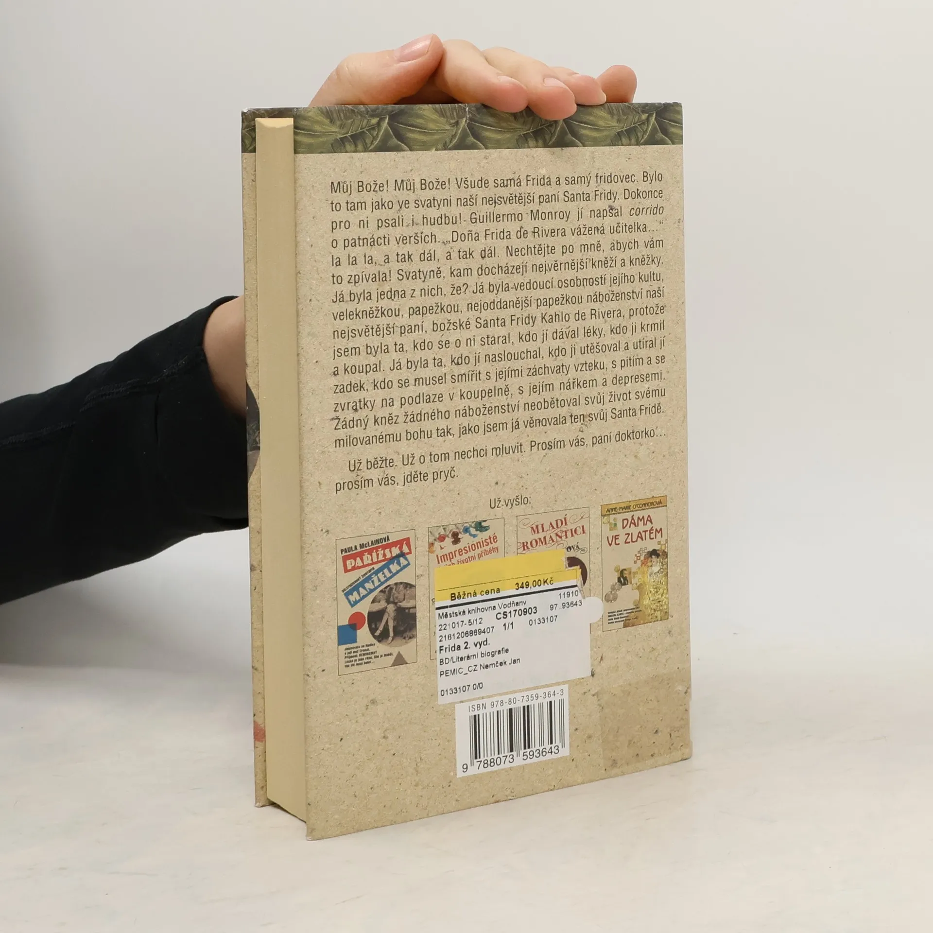 Strhující životní drama slavné mexické malířky… Nové vydání oblíbeného biografického románu. Frida Kahlo, mexická malířka a významná kulturní osobnost, po otci německého původu, v dětství zmrzačená obrnou a ve věku osmnácti let téměř smrtelně zraněná, žila život plný extrémů. Vzala si za muže další klíčovou osobnost mexického kulturního života, malíře Diega Riveru, s nímž prožila vášnivý vztah naplněný láskou, ale také žárlivostí a nevěrou. V tomto románu, jenž je živě vykresleným portrétem podmanivé a jedinečné ženy, se citlivou a emocionální vypravěčkou stává Fridina sestra Cristina, svědkyně a občas i přímá účastnice jejich bouřlivého manželství. Sledujeme tak nejen intenzivní soupeření obou sester o přízeň Diega Rivery, ale i fascinující obrazový kaleidoskop Mexika první poloviny 20. století. V příběhu má své místo také řada jiných slavných osobností, například ruský revolucionář Lev Trockij či oslnivě krásné filmové hvězdy María Félix, Dolores del Río a Paulette Goddard. Bárbara Mujica splétá životy a lásky těchto pozoruhodných a výjimečných lidí do skutečného dramatu, které dovádí k velkolepému konci.
