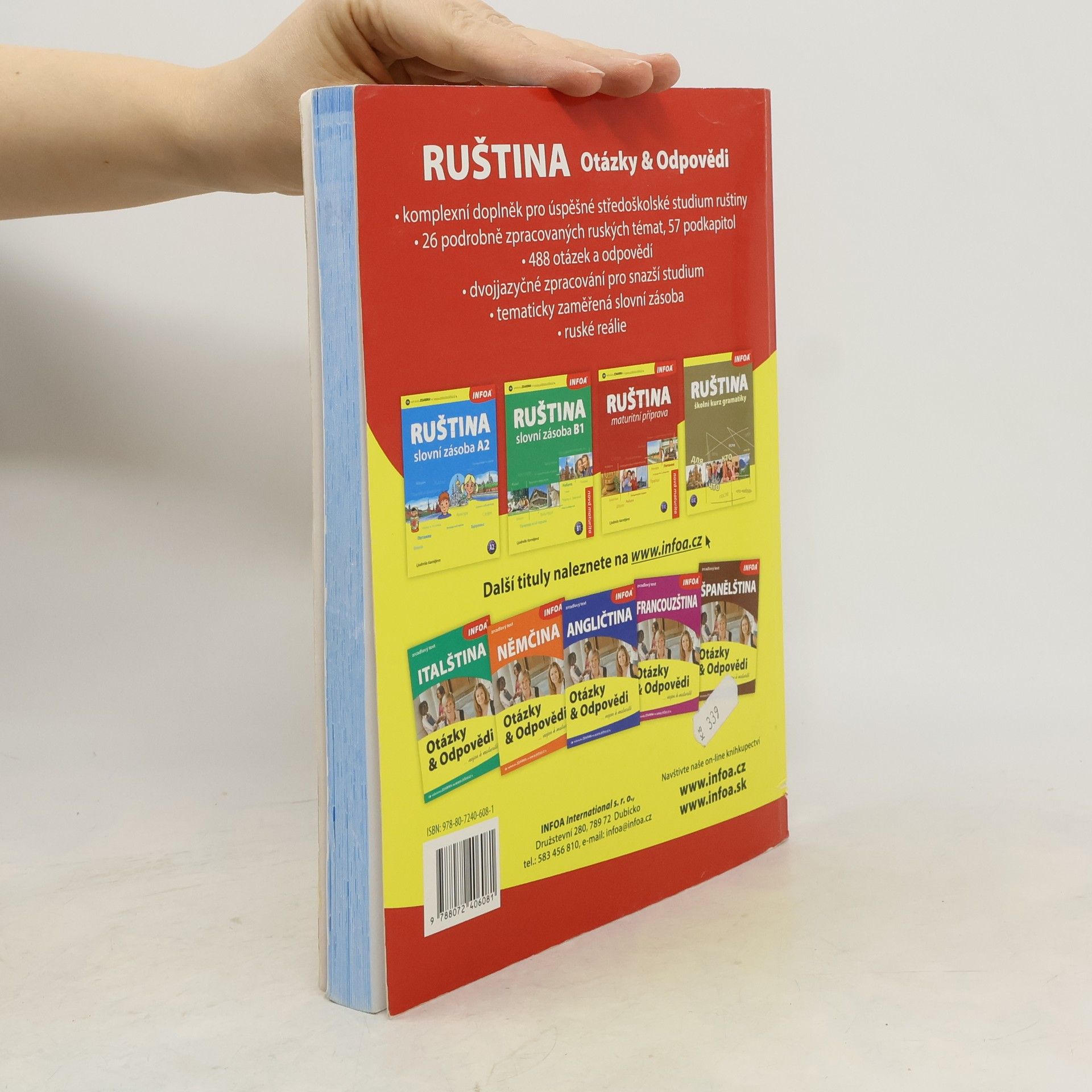 Komplexní doplňková učebnice pro úspěšné středoškolské studium ruštiny obsahuje 26 podrobně zpracovaných témat, 57 podkapitol, 469 otázek a odpovědí, tematicky zaměřenou slovní zásobu a reálie. Dvojjazyčné zpracování pro snazší studium.