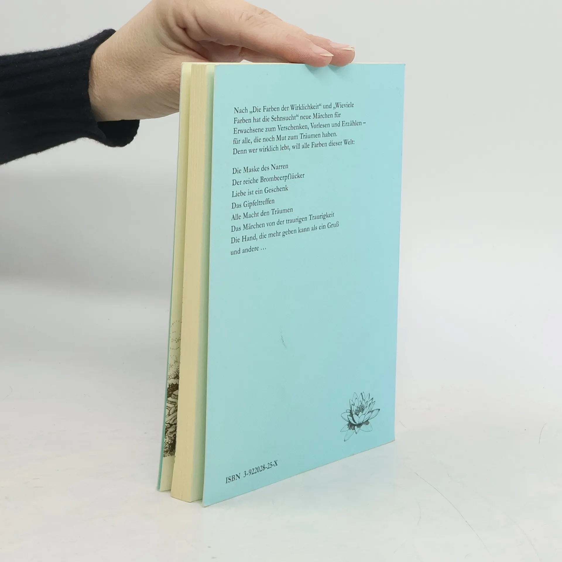 Nach "Farben der Wirklichkeit" und "Wieviele Farben hat die Sehnsucht" neue Märchen für Erwachsene zum Verschenken, Vorlesen und Erzählen - für alle, die noch Mut zum Träumen haben. Denn wer wirklich lebt, will alle Farben dieser Welt. . Die Maske des Narren Der reiche Brombeerpflücker Liebe ist ein Geschenk Das Gipfeltreffen Alle Macht den Träumen Das Märchen von der traurigen Traurigkeit Die Hand, die mehr geben kann als ein Gruß und andere ...