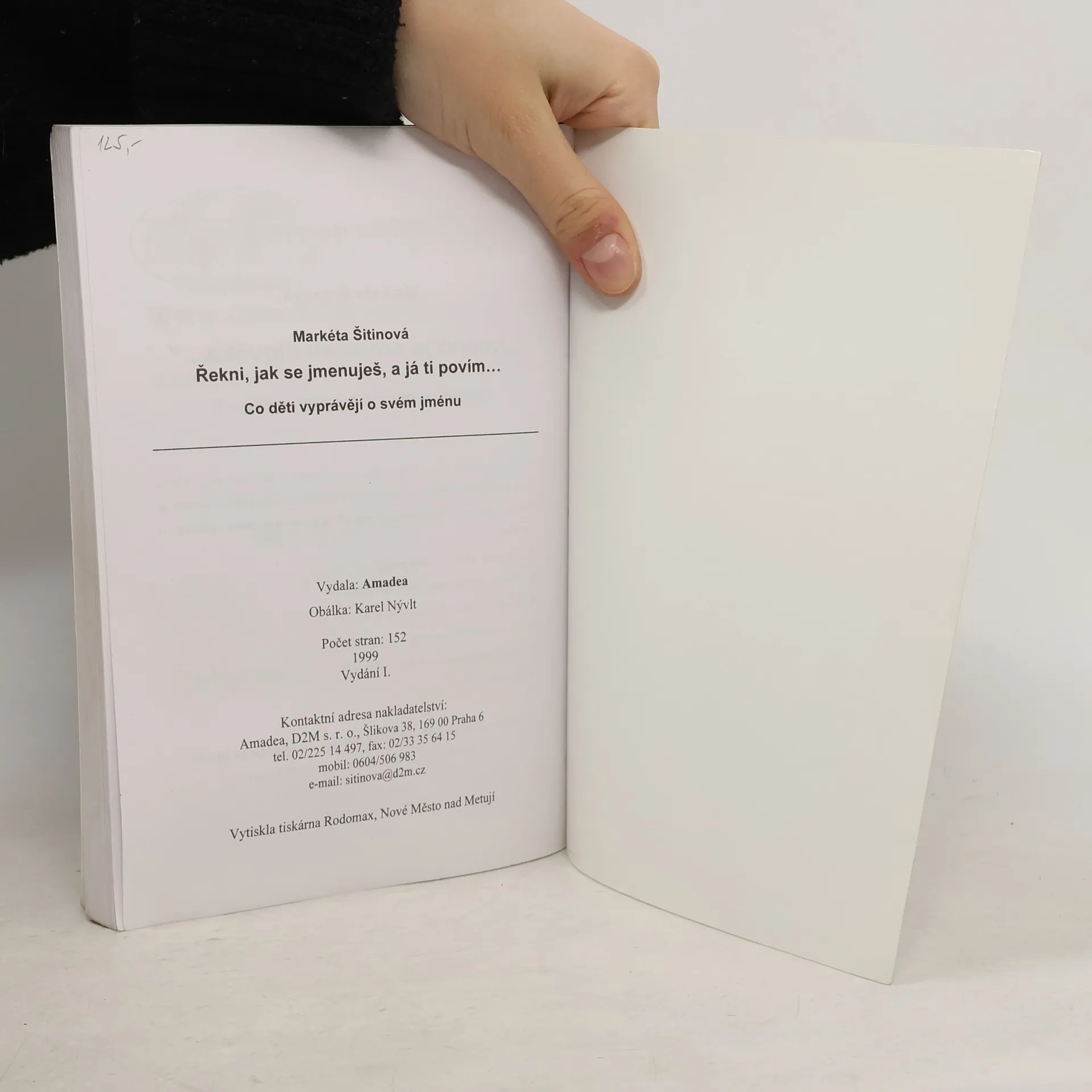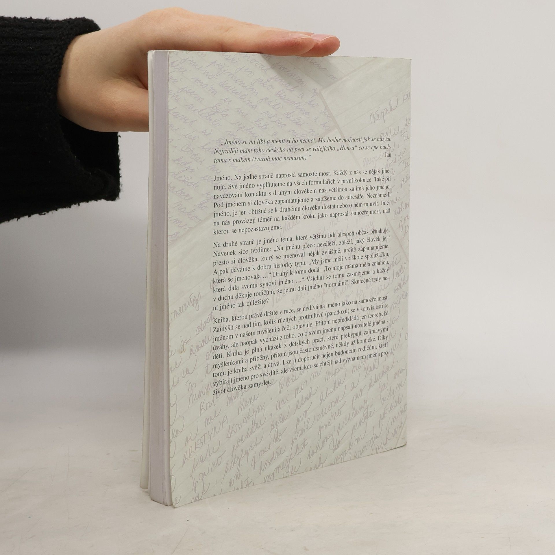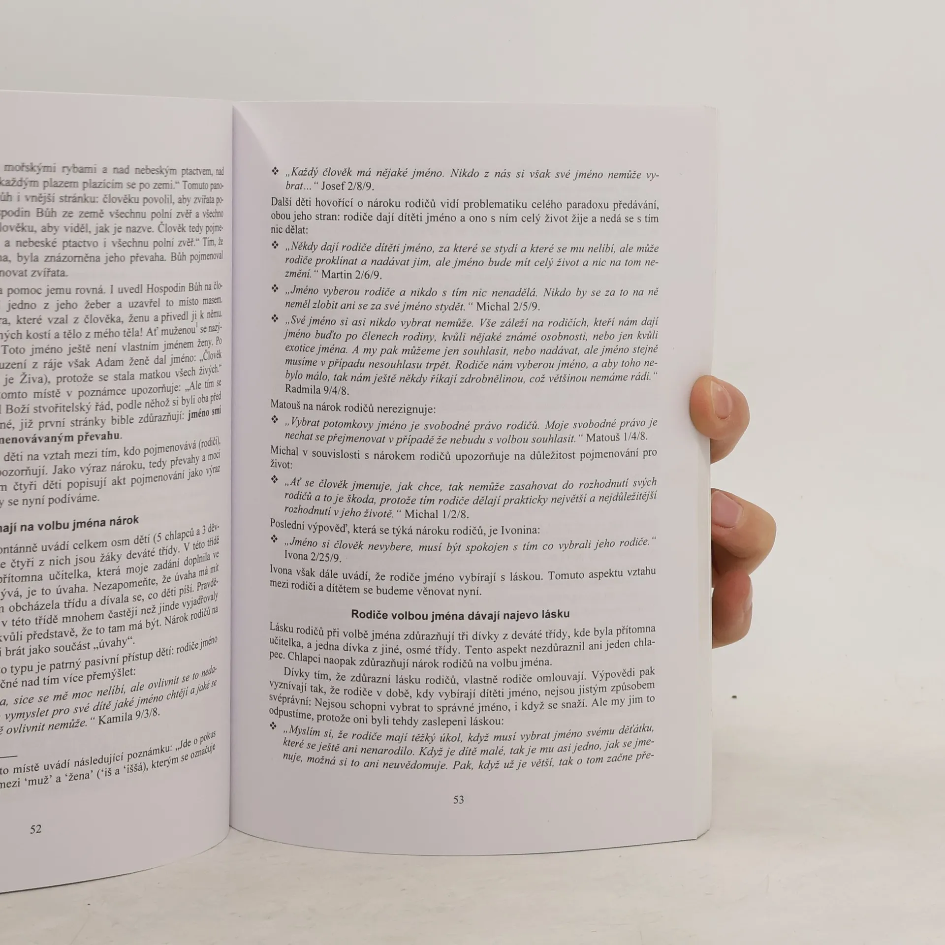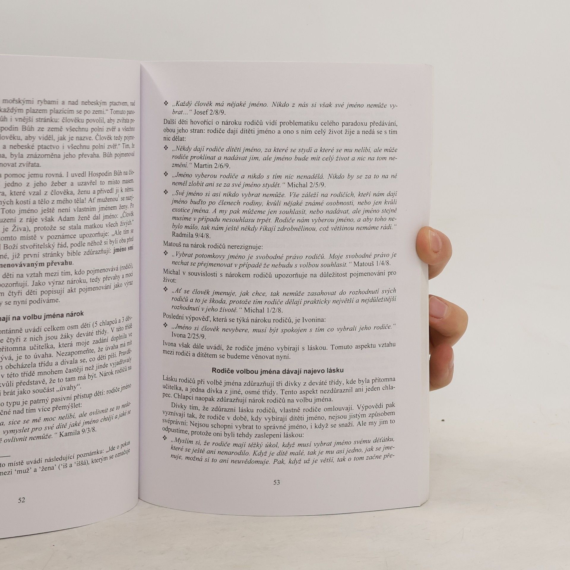 "Řekni, jak se jmenuješ, a já ti povím... Co děti vyprávějí o svém jménu" Kniha je určena všem, kteří se chtějí zamyslet nad významem jména pro život člověka. Nepředkládá jen teoretické úvahy, ale vychází také z toho, co o svém jménu napsali nositelé jména - děti.
