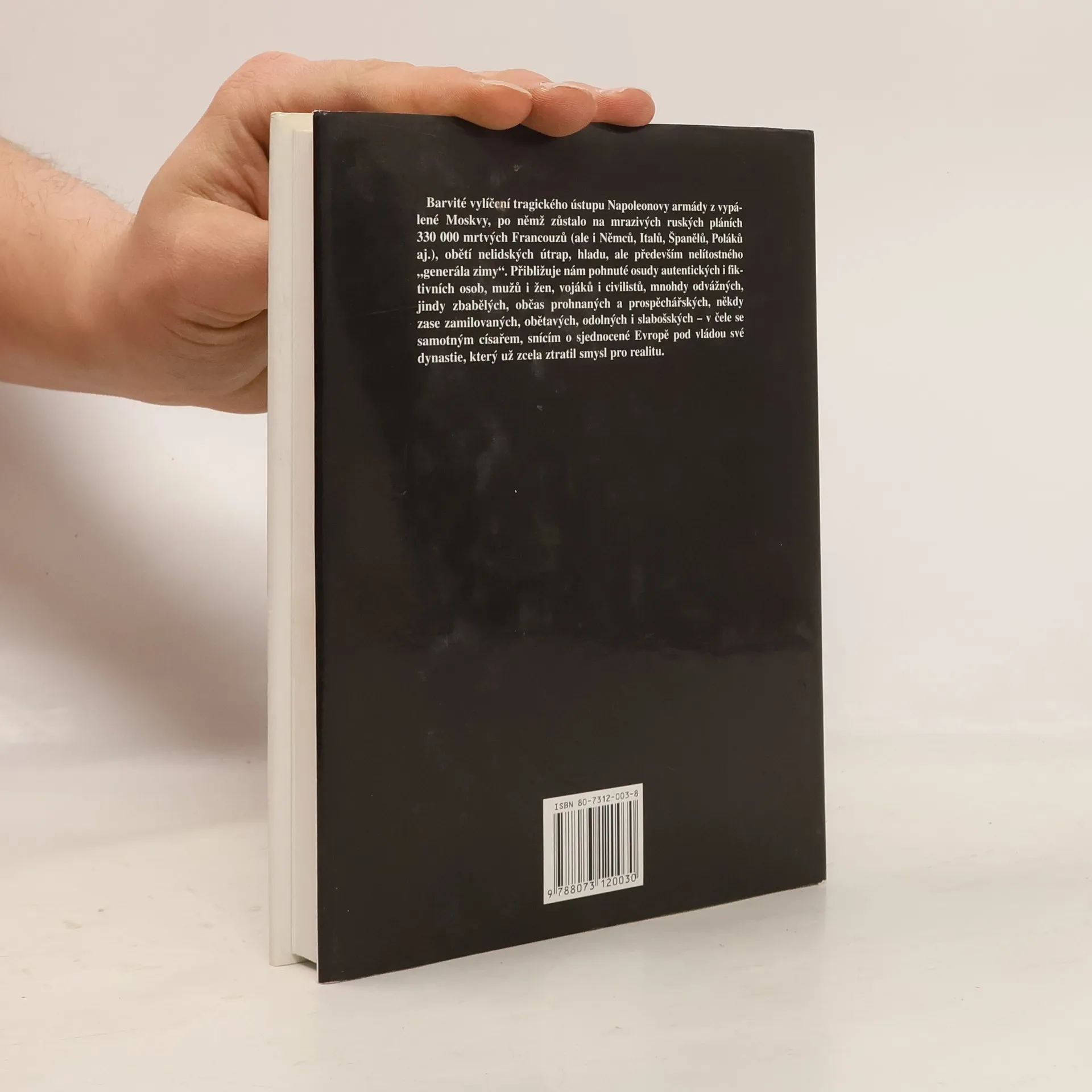 Román fundovaného autora, který se pohybuje na hranici prózy a literatury faktu, sleduje tragické osudy napoleonských vojáků, kteří náhle poznali trpkou příchuť porážky. V mrazivých ruských plání roku 1812 zahynula přes 300 000 členů „neporazitelné“ armády.