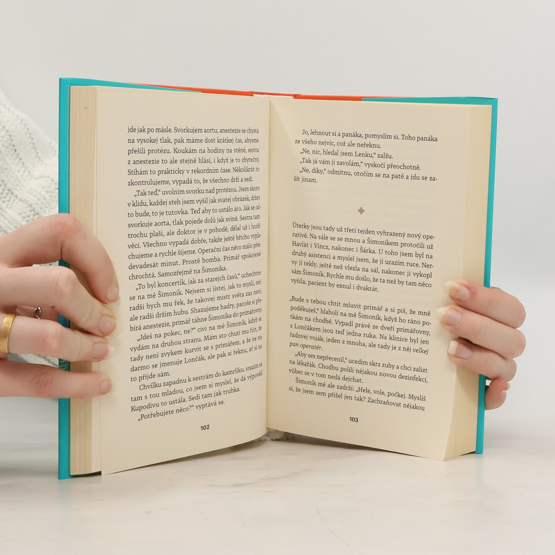 Před sebou neutečeš! „Nedokážu být ani rovnej, ani křivej. Můj život se rozlomil vejpůl a já už nečekám žádný pevný lano, který mě bude jistit,“ přemítá MUDr. Hynek Grábl, chirurg v příhraniční nemocnici, který už ani nedoufá, že by se jeho život ještě někdy mohl vyvíjet příznivěji. Kariéra špičkového odborníka na pražské klinice předčasně skončila kvůli jednomu karambolu s alkoholem a následky teď musí nést nejen on, ale i jeho věčně nespokojená žena a dospívající děti. Životní ani finanční účetnictví nevykazují příznivou bilanci a na horizontu zítřka se objevují všechny symptomy krize středního věku. Gráblova snaha nalézt východisko se však podobá spíš jízdě na horské dráze a často končí kocovinou. Pomůže mu milovaná profese, milenka nebo nová šance vrátit se k zajímavé operativě a kariérně růst? Na operačním sále i mimo něj se občas dá jen těžko poznat, kdo jakou hru hraje, kdo je vítěz a kdo poražený a kam povede další cesta. Hynkovi G. často nezbývá než věřit, že se nepotopí na úplné dno.