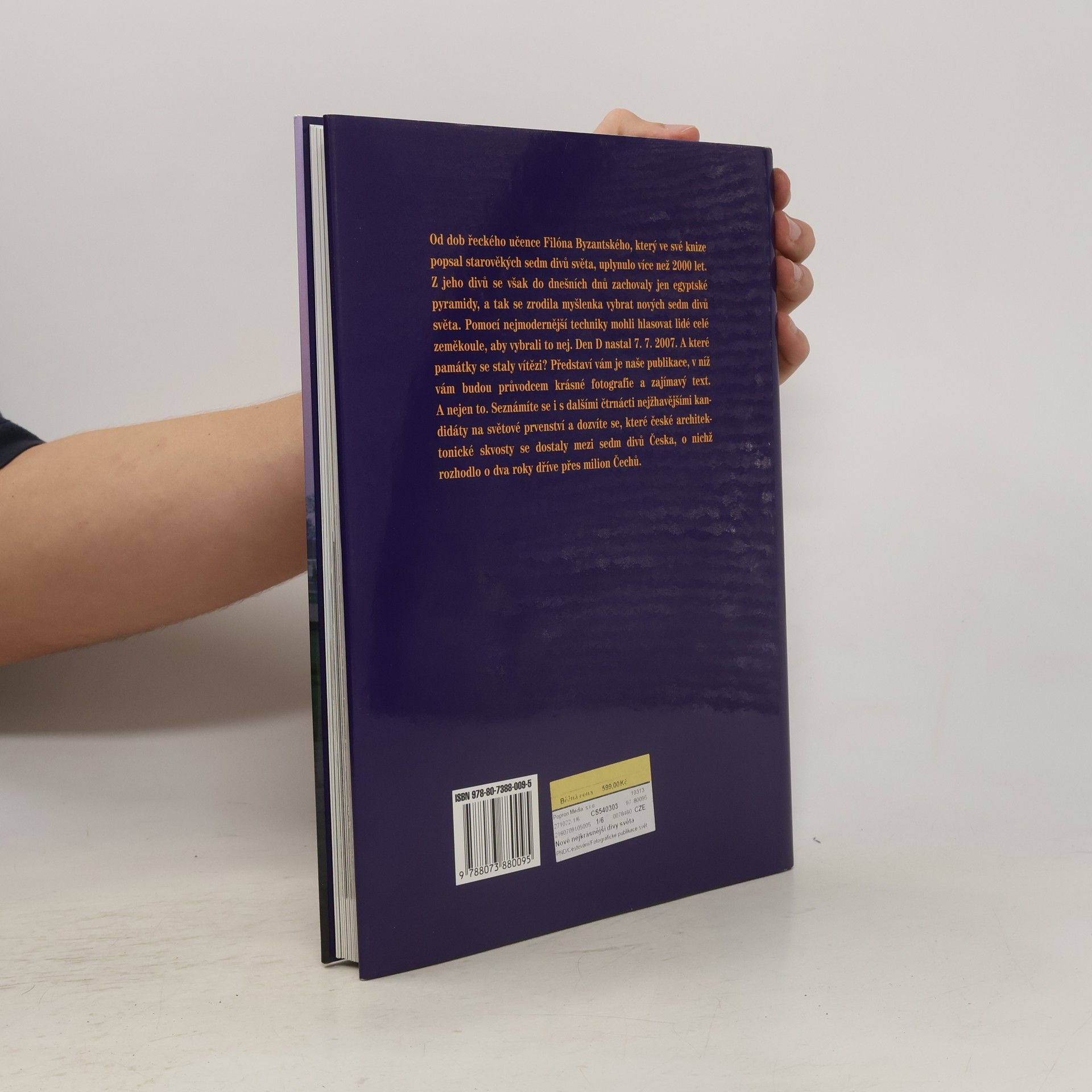 Od dob řeckého učence Filióna Byzantského, který ve své knize popsal starověkých sedm divů světa, uplynulo více než 2000 let. Z jeho divů se však do dnešních dnů zachovaly jen egyptské pyramidy, a tak se zrodila myšlenka vybrat nových sedm divů světa. Pomocí nejmodernější techniky mohli hlasovat lidé celé zeměkoule, aby vybrali to nej. Den D nastal 7.7. 2007. A které památky se staly vítězi?. Představí nám je tato publikace, v níž vám budou průvodcem krásné fotografie a zajímavý text...