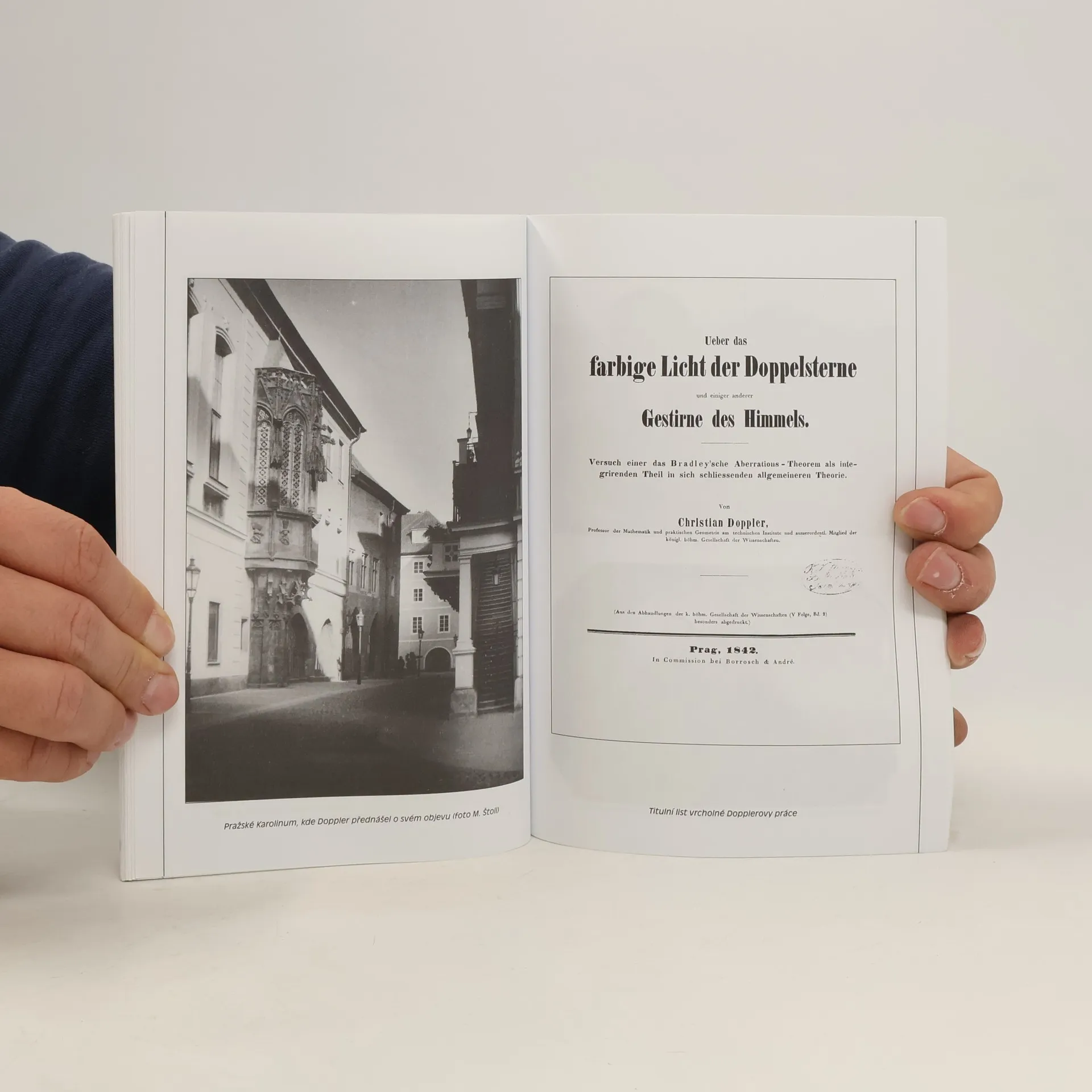 Dopplerův jev spočívající ve změně kmitočtu vlnění, pohybují-li se vzájemně jeho zdroj a pozorovatel, je základem mnoha technických a lékařských aplikací a zcela změnil naše poznatky o vesmíru, jeho pohybu a vývoji. Je málo známo, že tento významný fyzikální objev vznikl v Praze roku 1842, kde Christian Doppler působil jako profesor pražské techniky. Publikace seznamuje se životem a prací této pozoruhodné osobnosti, která na konci života stanula i u počátků novodobé fyziky rakouské. Doppler svým vědeckým zápalem a usilovnou snahou prospět lidstvu překonával mnoho životních nesnází a jeho odkaz je i dnes živý.