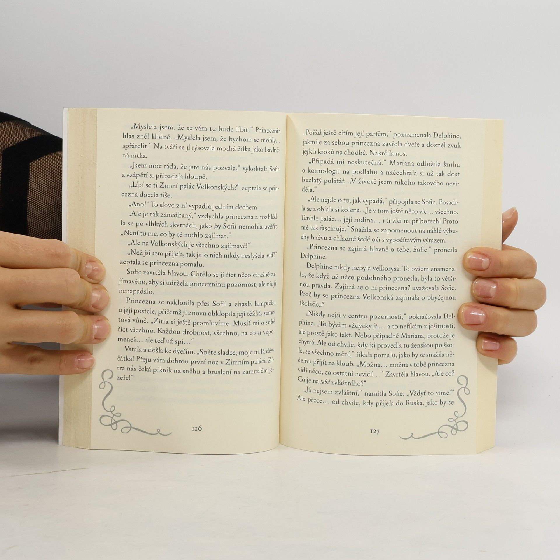 Sofie je na světě sama a touží být něčím výjimečná. Ale to, co ji v životě čeká, by si nepomyslela ani ve snu... Školní výlet. Zasněžené pláně Ruska. Sofie, Delphine a Mariana se náhle ocitnou samy ve vlaku uprostřed liduprázdné, mrazivé pustiny. Dočkají se však pohádkového vysvobození - princezna Anna Fjodorovna Volkonská je na saních tažených koněm odveze do svého zimního paláce, obleče do krásných šatů a připraví jim neobvyklé zážitky. Když padne noc a z okolních lesů zavyjí vlci, zjišťuje Sofie, že tajuplný zchátralý palác obsahuje nejedno tajemství, které jí je vzdáleně povědomé. Začíná pátrat ve vzpomínkách na ztracené dětství, a z toho, co nakonec objeví, jí běhá mráz po zádech. Je princezna Anna tou, za kterou se vydává? Pokud ne, kdo je skutečnou dědičkou šlechtického sídla? A proč Sofii tak přitahují ti bílí vlci? 2. vydání