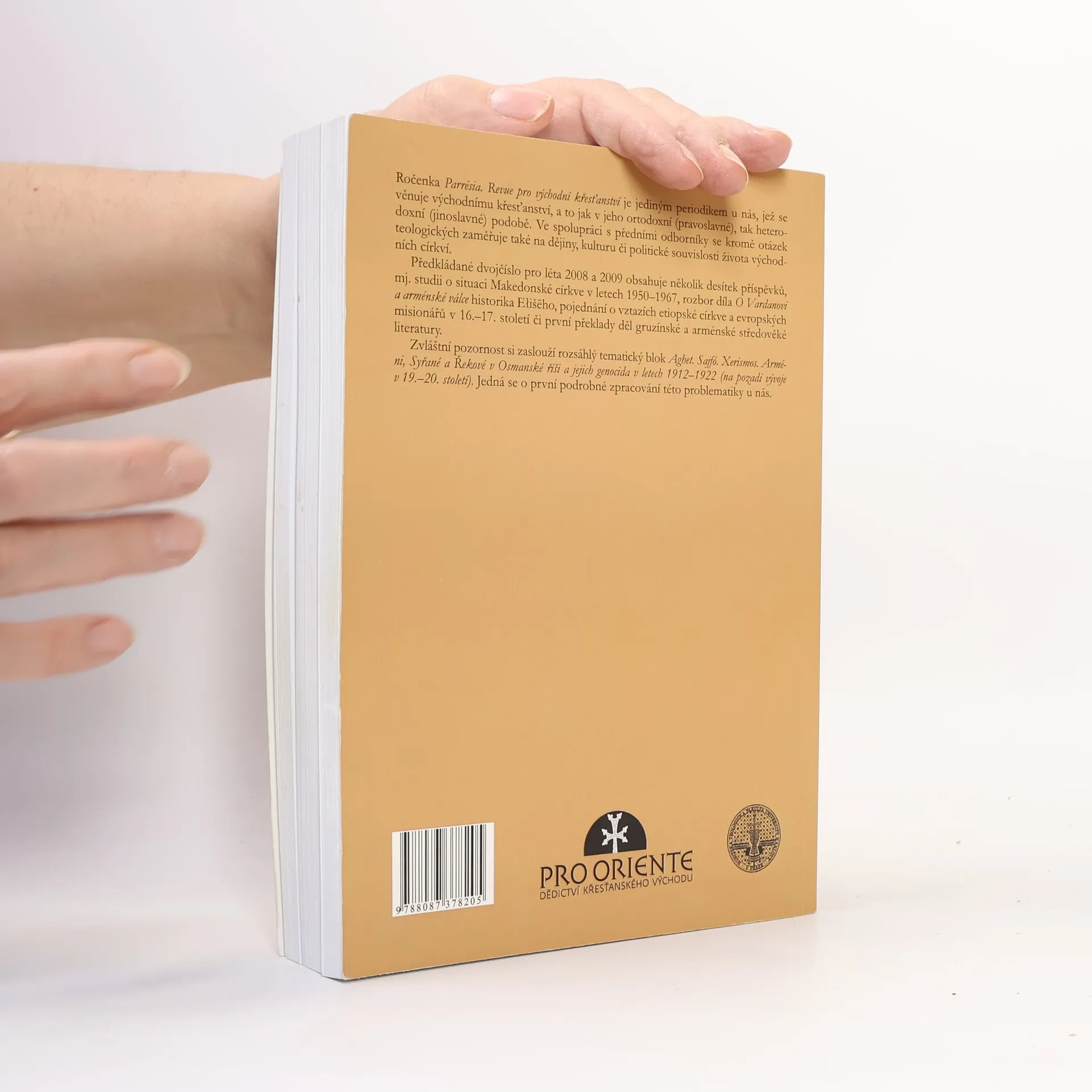 PARRÉSIA II–III (2008–2009). Revue pro východní křesťanství Ročenka Parrésia. Revue pro východní křesťanství je jediným periodikem u nás, jež se věnuje východnímu křesťanství, a to jak v jeho ortodoxní (pravoslavné), tak heterodoxní (jinoslavné) podobě. Ve spolupráci s předními odborníky se kromě otázek teologických zaměřuje také na dějiny, kulturu či politické souvislosti života východních církví. Předkládané dvojčíslo pro léta 2008 a 2009 obsahuje několik desítek příspěvků, mj. studii o situaci Makedonské církve v letech 1950–1967, rozbor díla O Vardanovi a arménské válce historika Ełišeho, pojednání o vztazích etiopské církve a evropských misionářů v 16.–17. století či první překlady děl gruzínské a arménské středověké literatury. Zvláštní pozornost si zaslouží rozsáhlý tematický blok Aghet. Sajfó. Xerismos. Arméni, Syřané a Řekové v Osmanské říši a jejich genocida v letech 1912–1922 (na pozadí vývoje v 19.–20. století). Jedná se o první podrobné zpracování této problematiky u nás.