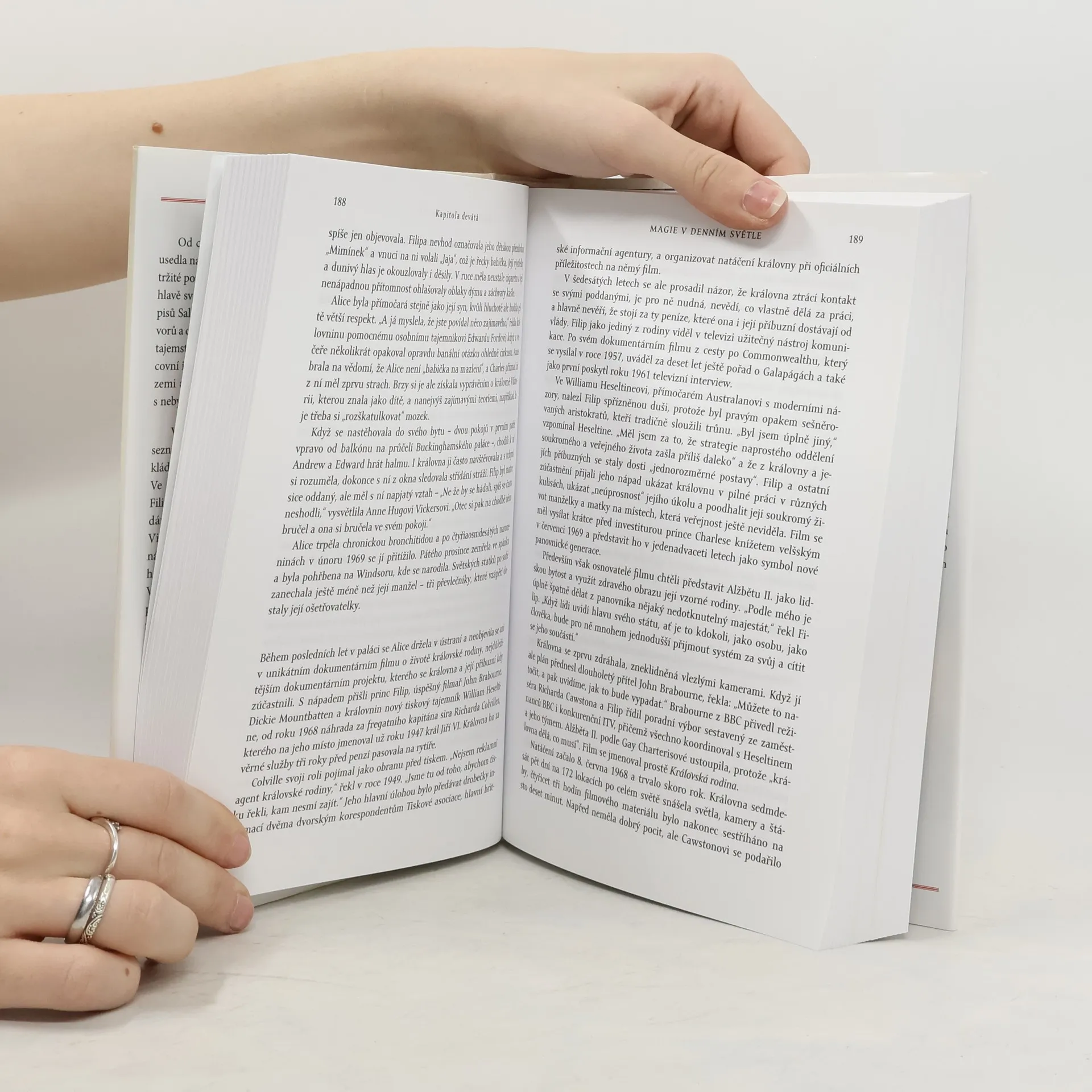 Od chvíle, kdy v roce 1952 usedla na trůn, byla královna Alžběta II. středem nepřetržité pozornosti. Autorka Sally Bedell Smithová na základě mnoha rozhovorů a dříve utajených dokumentů odhaluje tajemství a důvěrné detaily o pracovním i soukromém životě královny, která vedla svou zemi a Commonwealth šedesáti lety válek a otřesů s klidem a důstojností. Seznamujeme se s dívkou, jež se stává „předpokládanou dědičkou“ po abdikaci strýce. Ve třinácti letech se zamiluje do mladého kadeta Filipa a rozhodne se za něj provdat, ačkoli rodiče preferují bohatší britské šlechtice. Sledujeme, jak Lilibet během války opravuje náklaďáky a v den vítězství stojí na balkóně Buckinghamského paláce po boku Winstona Churchilla. Mladá královna se snaží skloubit role panovnice a matky dvou malých dětí. Smithová nás zavádí do paláce, popisuje královninu každodenní práci s „červenými krabicemi“ oficiálních listin, schůzkami s dvanácti premiéry, zahraničními cestami a neustálým dohledem tisku, stejně jako její osobní vztahy s princem Filipem, dětmi a přáteli. Kniha je čtivá a badatelsky pečlivá, ukazuje ženu, kterou známe jen z dálky, její povahu, smysl pro humor a bystrý intelekt, které jí pomáhají zvládat náročné úkoly v pracovním i rodinném životě, a poskytuje vhled do fungování poslední velké světové monarchie.