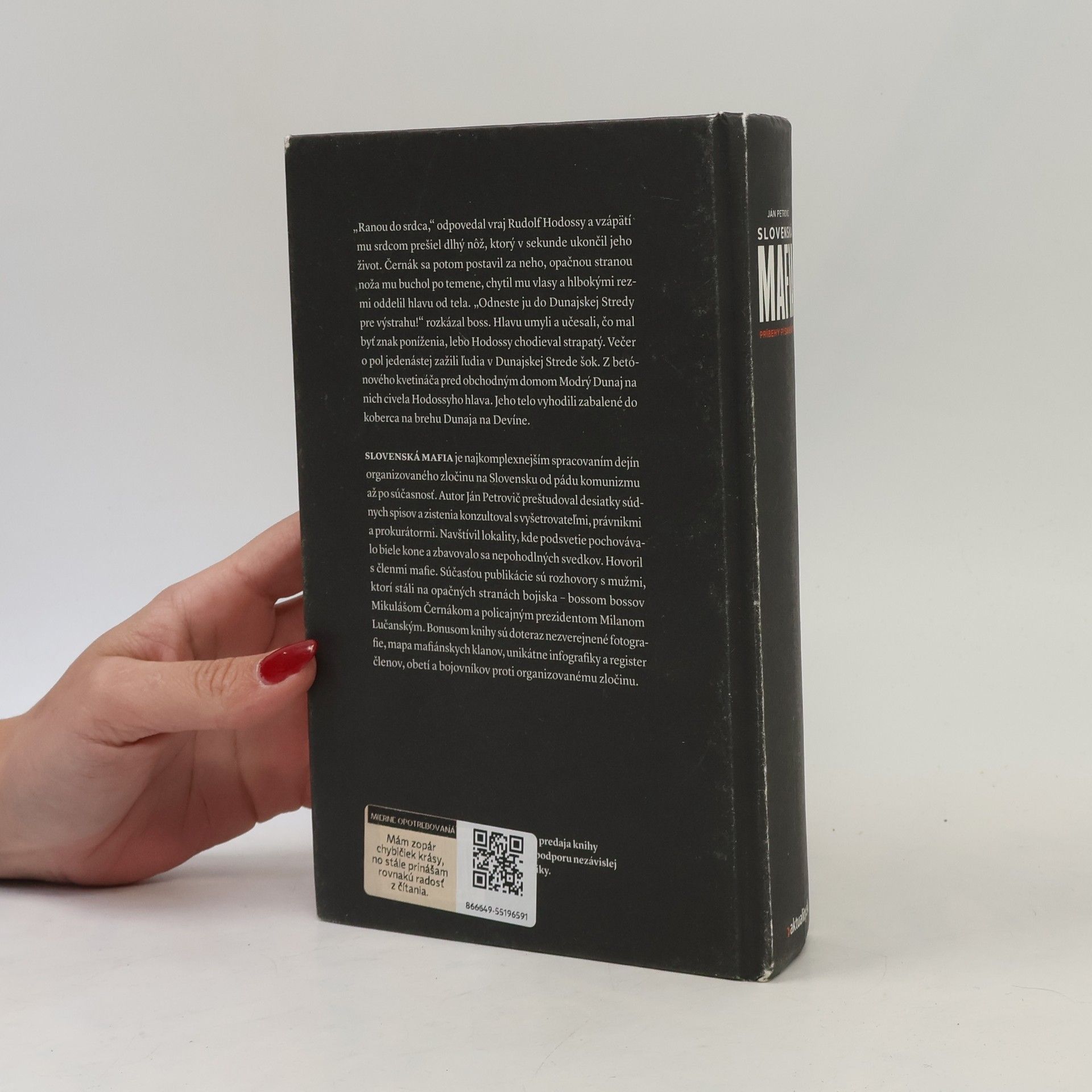 Slovenská mafia je najkomplexnejším spracovaním dejín organizovaného zločinu na Slovensku od pádu komunizmu až po súčasnosť. Autor Ján Petrovič sa téme slovenskej mafie venuje od začiatku novinárskej kariéry. Pri príprave vyše 400-stranovej publikácie hovoril s mafiánmi, ktorí prežili vybavovanie si účtov v podsvetí, skončili za mrežami alebo sú dnes na slobode. Bol na miestach, kde dochádzalo k výbuchom a ďalším násilným trestným činom. Navštívil lokality, kde podsvetie pochovávalo biele kone a zbavovalo sa nepohodlných svedkov. Preštudoval desiatky súdnych spisov a svoje zistenia konzultoval s vyšetrovateľmi, právnikmi a prokurátormi. Bonusom knihy sú doteraz nezverejnené fotografie, mapa mafiánskych klanov, unikátne infografiky a register členov, obetí a bojovníkov proti organizovanému zločinu s vyše 600 položkami. Súčasťou knihy sú exkluzívne rozhovory s mužmi, ktorí stáli na opačných stranách bojiska - bossom bossov Mikulášom Černákom a policajným prezidentom Milanom Lučanským. Výťažok z predaja knihy pôjde na podporu nezávislej žurnalistiky.