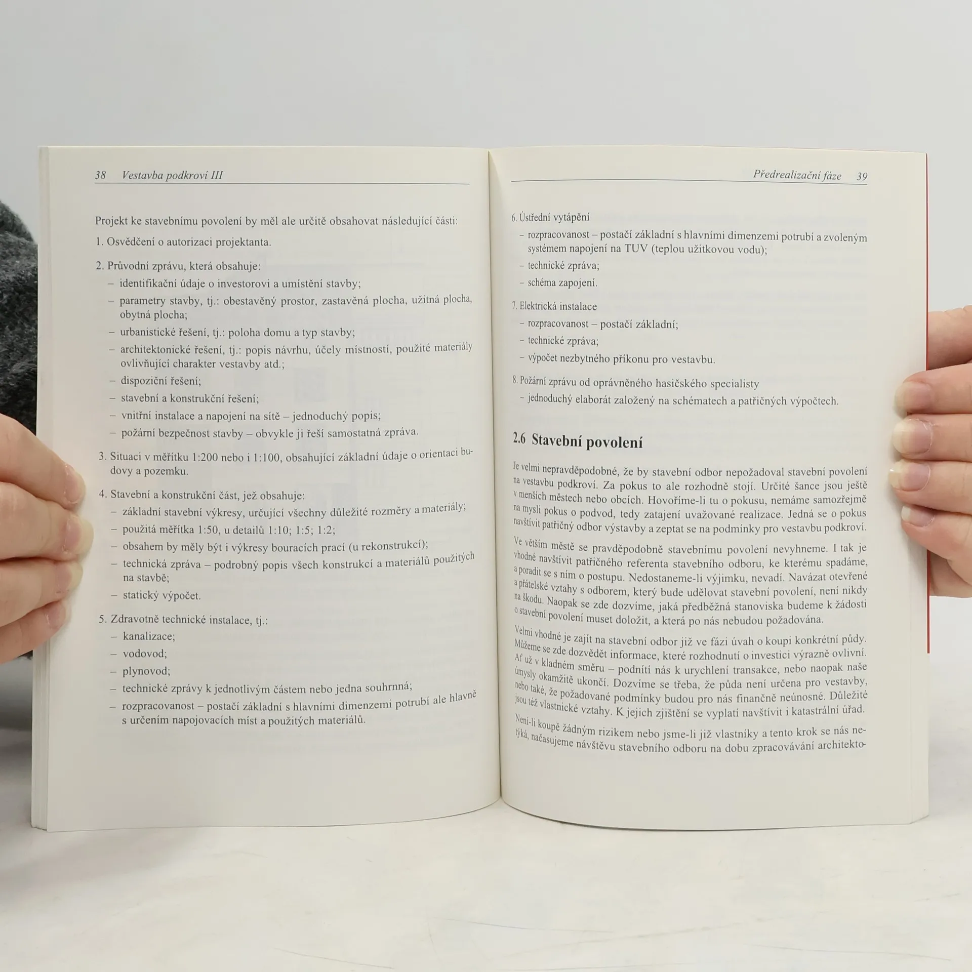 Příručka se zabývá otázkami, které souvisejí s půdními vestavbami, kromě vlastního návodu na jejich realizaci. Jsou to úskalí výběru vhodných prostor, architektonického řešení a projektové přípravy i podněty pro uspořádání budoucího interiéru. Otázky vlastní realizace vestavby řeší podrobně dvě předchozí příručky.