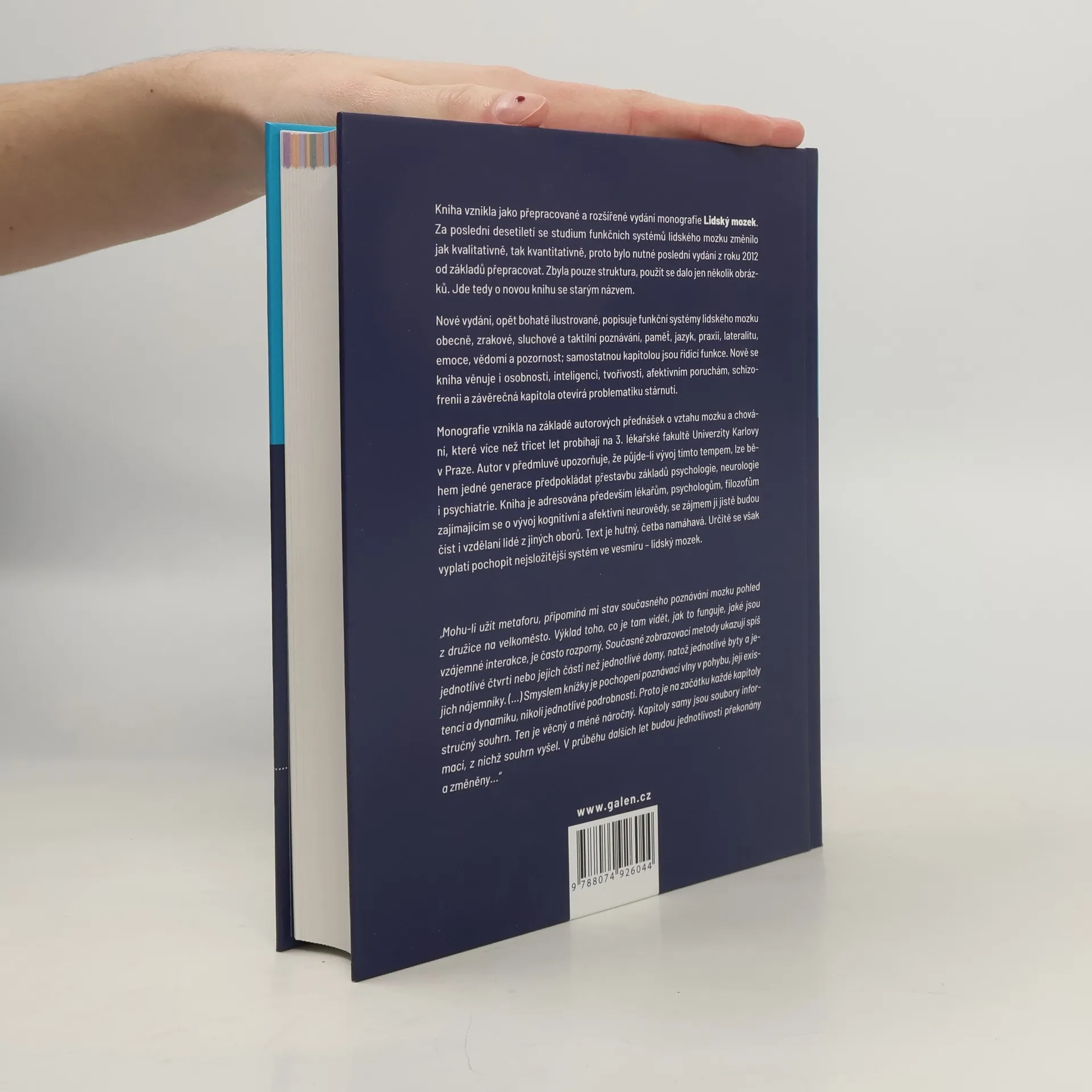 Kniha vznikla jako rozšířené vydání monografie Lidský mozek (2000, 2002), protože vědecký vývoj obsah předchozích vydání již z valné části překonal. Nové vydání, poprvé bohatě ilustrované, popisuje funkční systémy lidského mozku obecně, zrakové, sluchové a taktilní poznávání, paměť, jazyk, praxii, lateralitu, emoce, vědomí a pozornost; závěrečnou kapitolou jsou řídicí funkce. Monografie vznikla na základě autorových přednášek o vztahu mozku a chování, které již téměř dvacet let probíhají na 3. lékařské fakultě Univerzity Karlovy v Praze. Kniha je adresována především lékařům, psychologům, filozofům zajímajícím se o vývoj kognitivní a afektivní neurovědy, se zájmem ji jistě budou číst i vzdělaní lidé z jiných oborů. Autor v předmluvě upozorňuje, že kniha je náročná, text hutný, četba namáhavá. Určitě se však vyplatí pochopit nejsložitější systém ve vesmíru - lidský mozek.