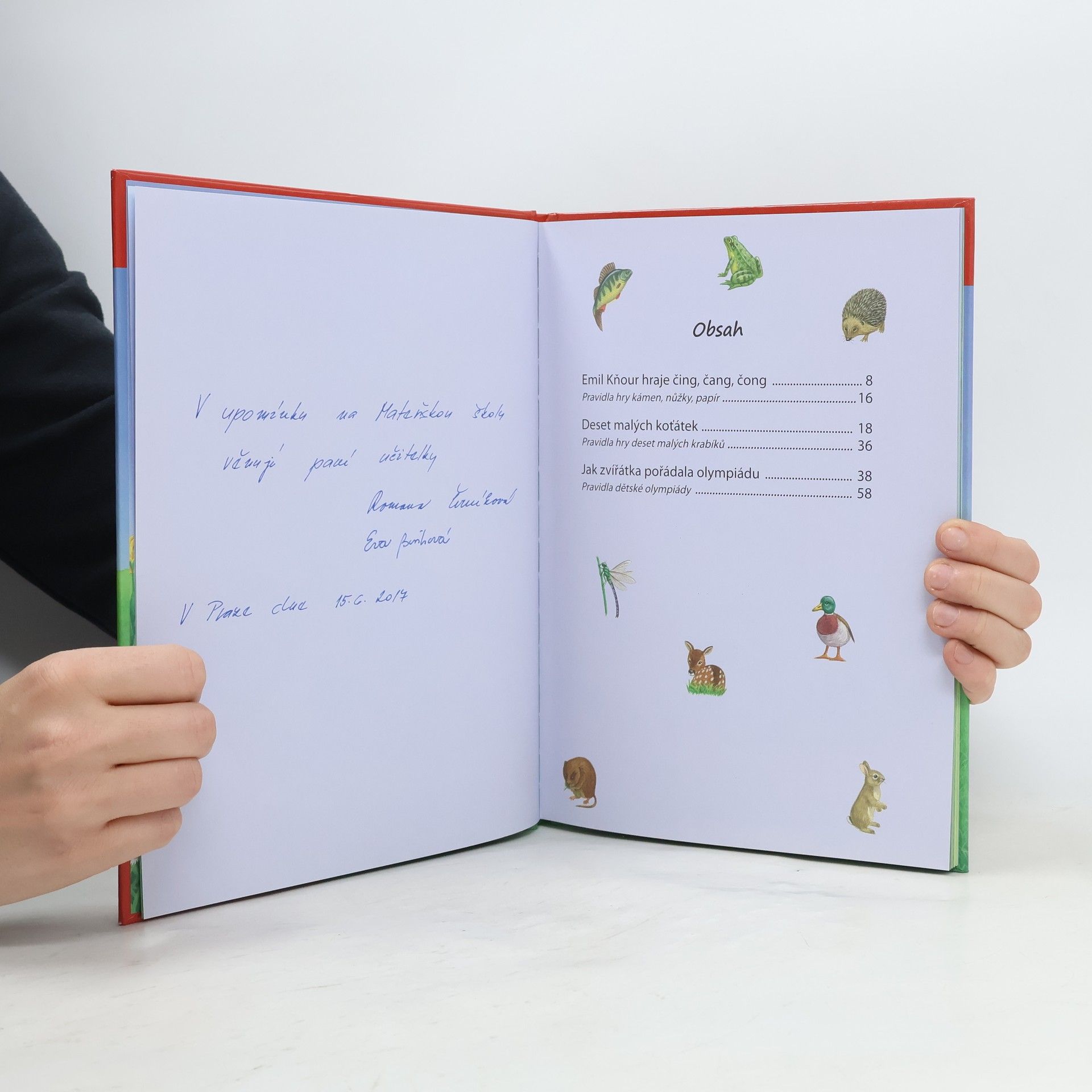 Ve čtyřech samostatných kapitolách této knížky se děti seznámí se zvířátky, která žijí u nás - ať už na mezi a na poli, na břehu a ve vodě, v lese nebo na louce. Dozvědí se mnoho zajímavého o prostředí, ve kterém žijí, čím se živí, jak jsou velká, jak loví, ale také některé zajímavosti z jejich života. Realistické barevné ilustrace dětem napomohou ke snadnému zapamatování jednotlivých zvířat.