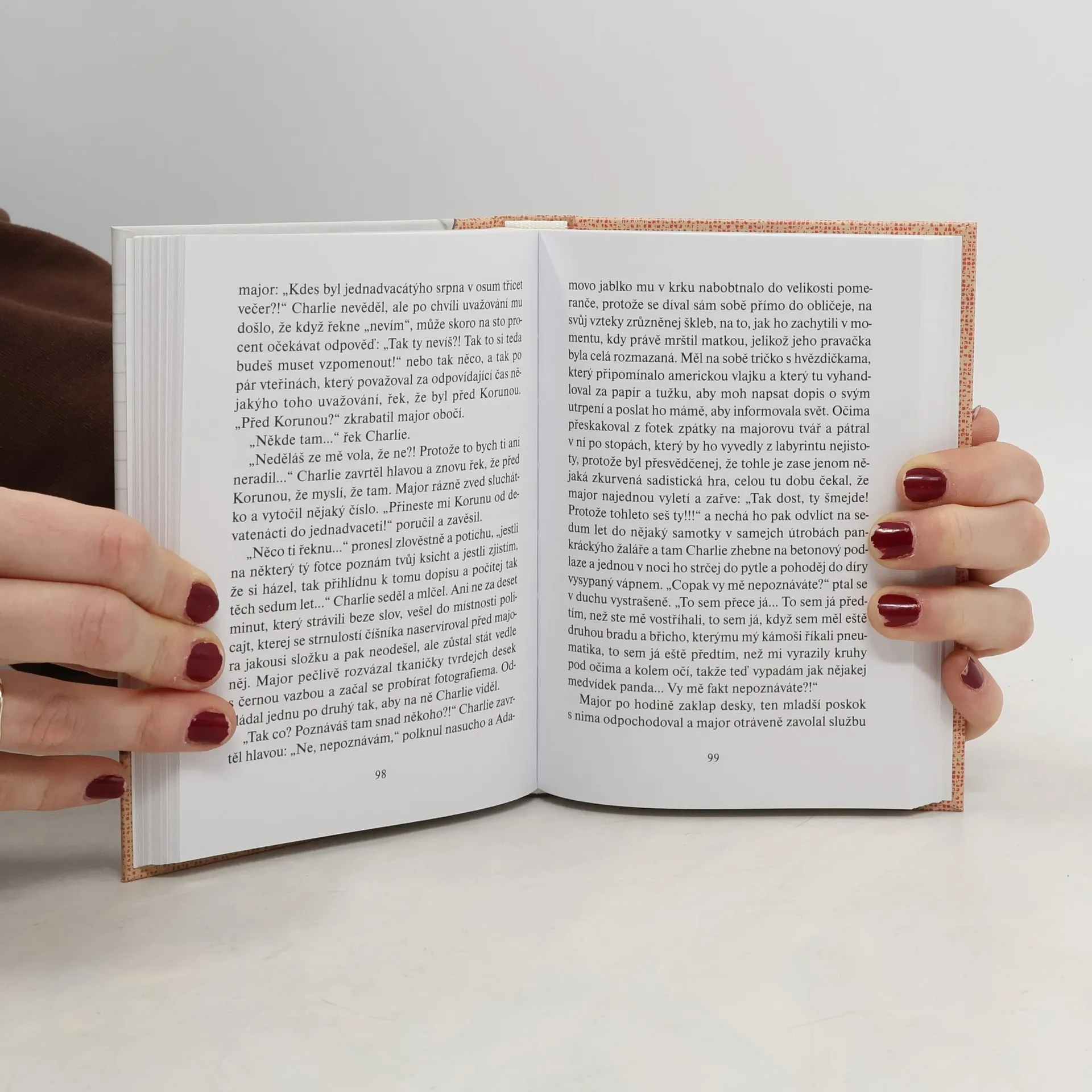 Autor v hrůze vzpomíná na léta, kdy se i cesta s odpadky do popelnice před dům, bez občanského průkazu mohla stát osudovou. Volně inspirován Stendhalem dělí policisty, kteří nám znepříjemňovali život, na švestkově modré, zelené, neviditelné a ty ostatní.