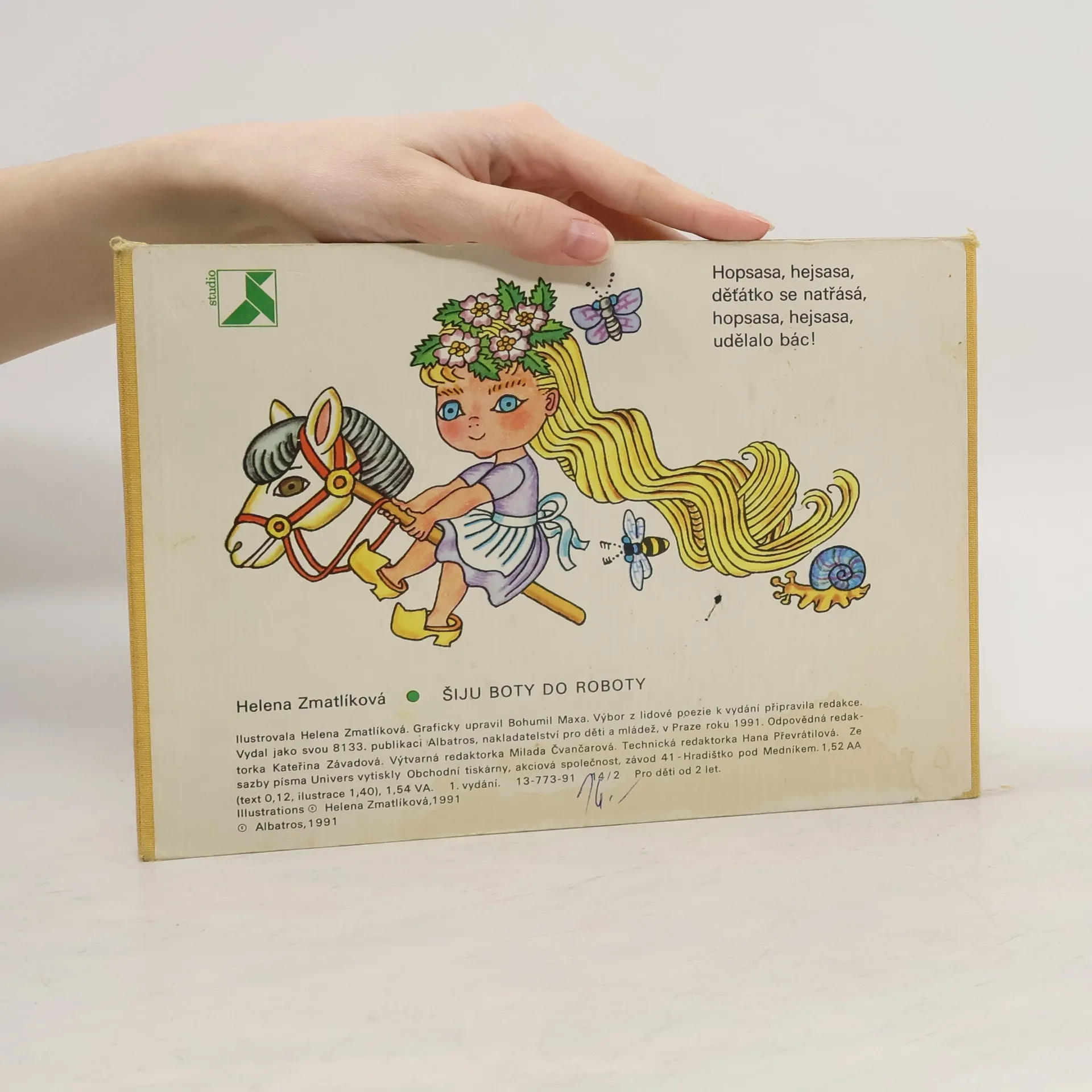 Leporelo oblíbených lidových říkadel pro nejmenší s působivými obrázky Heleny Zmatlíkové jistě potěší malé i velké. Určitě si rádi připomenete a své děti naučíte Kolo, kolo mlýnský nebo Šiju boty do roboty. Výrazná rytmická říkadla jsou snadno zapamatovatelná a dítě si bude při jejich opakování rozvíjet paměť i slovní zásobu.
