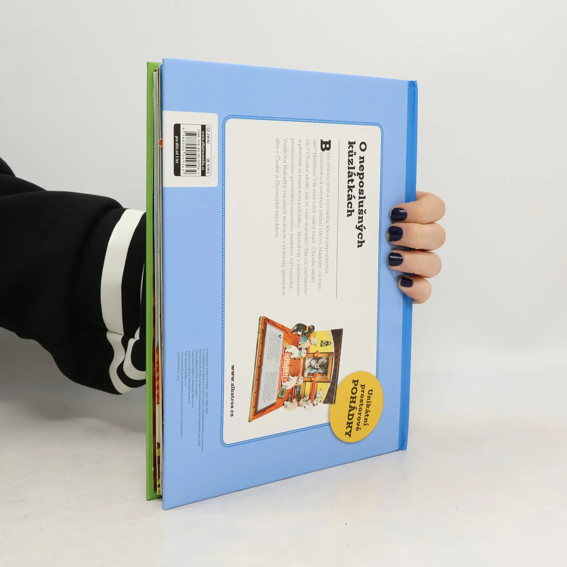 Byla jednou jedna kůzlátka, která neposlechla maminku a otevřela zlému vlkovi. Hádejte, co bylo dál? Neštěstí. Vlk měl totiž velký hlad… Chcete vědět víc? Chcete vědět jak to celé dopadlo? Na nic nečekejte a přečtěte si klasickou pohádku. Tentokrát v nádherném prostorovém provedení slavného českého výtvarníka Vojtěcha Kubašty, na jehož knihách vyrůstaly generace dětí v České a Slovenské republice.