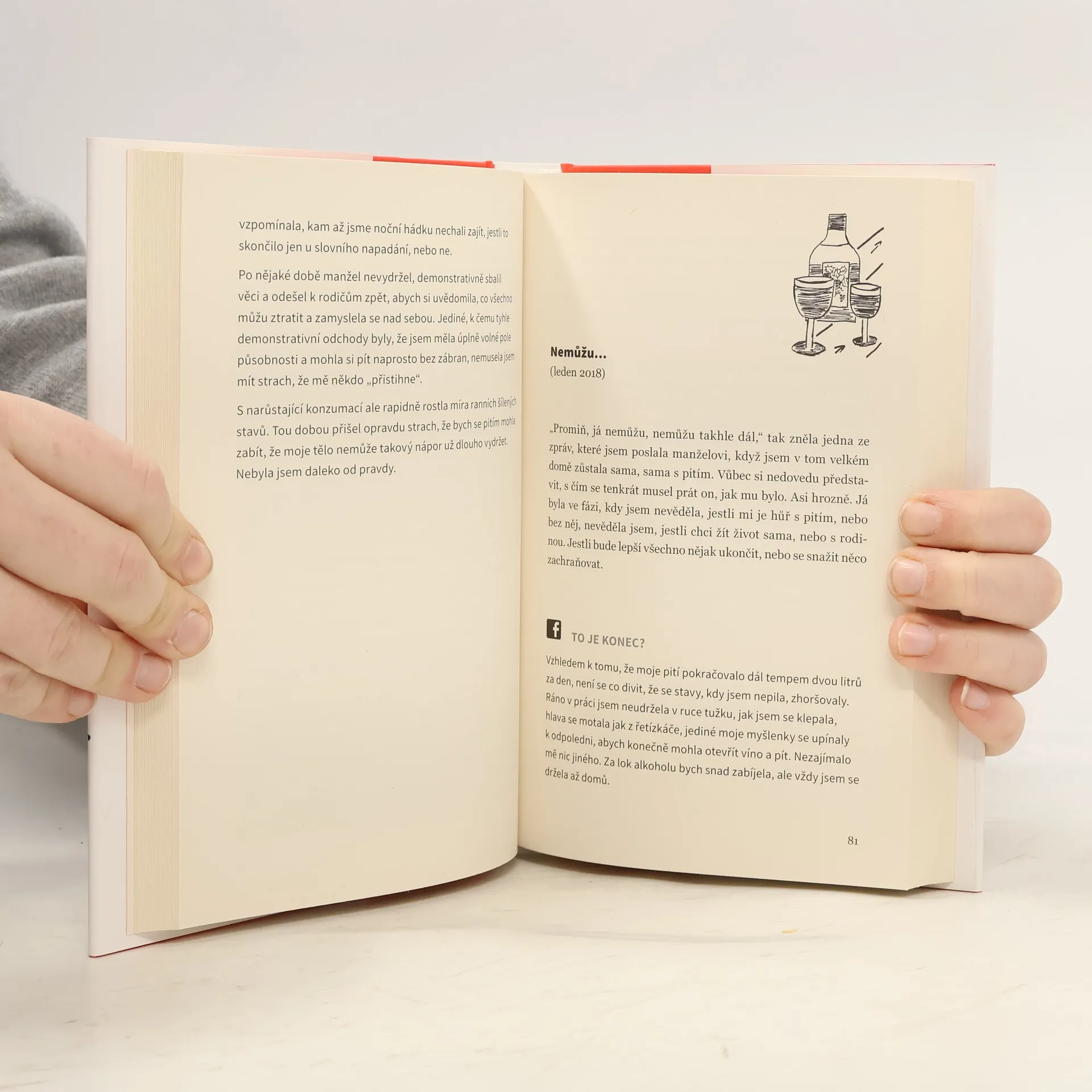 Poslední sklenička… dnes už popáté. Kniha podle blogu, který získal cenu Magnesia Litera. Michaela Duffková je mladá matka, která se rozhodla otevřeně promluvit o své závislosti na alkoholu i o složité léčbě. Chcete vědět, proč je tak těžké přiznat si problém s pitím? Proč není překážkou závislosti ani malé dítě? Co bylo autorce motivací k léčbě a jak vypadal první rok po ní? Všechny odpovědi přináší otevřená a přímá zpověď abstinující alkoholičky. Upřímně sdílená zkušenost o pádu doslova na dno vzbudila velký zájem veřejnosti, Michaela získala za svůj blog cenu Magnesia Litera a začala o závislosti veřejně přednášet. Dnes se věnuje svému vysněnému projektu – centru pro prevenci a léčbu závislosti na alkoholu. „Příběh Míši Duffkové je skvělým příspěvkem k destigmatizaci ženského alkoholismu a současně unikátní výpovědí o bolesti i naději.“ prof. PhDr. Michal Miovský, Ph.D. přednosta Kliniky adiktologie 1. LF UK a VFN