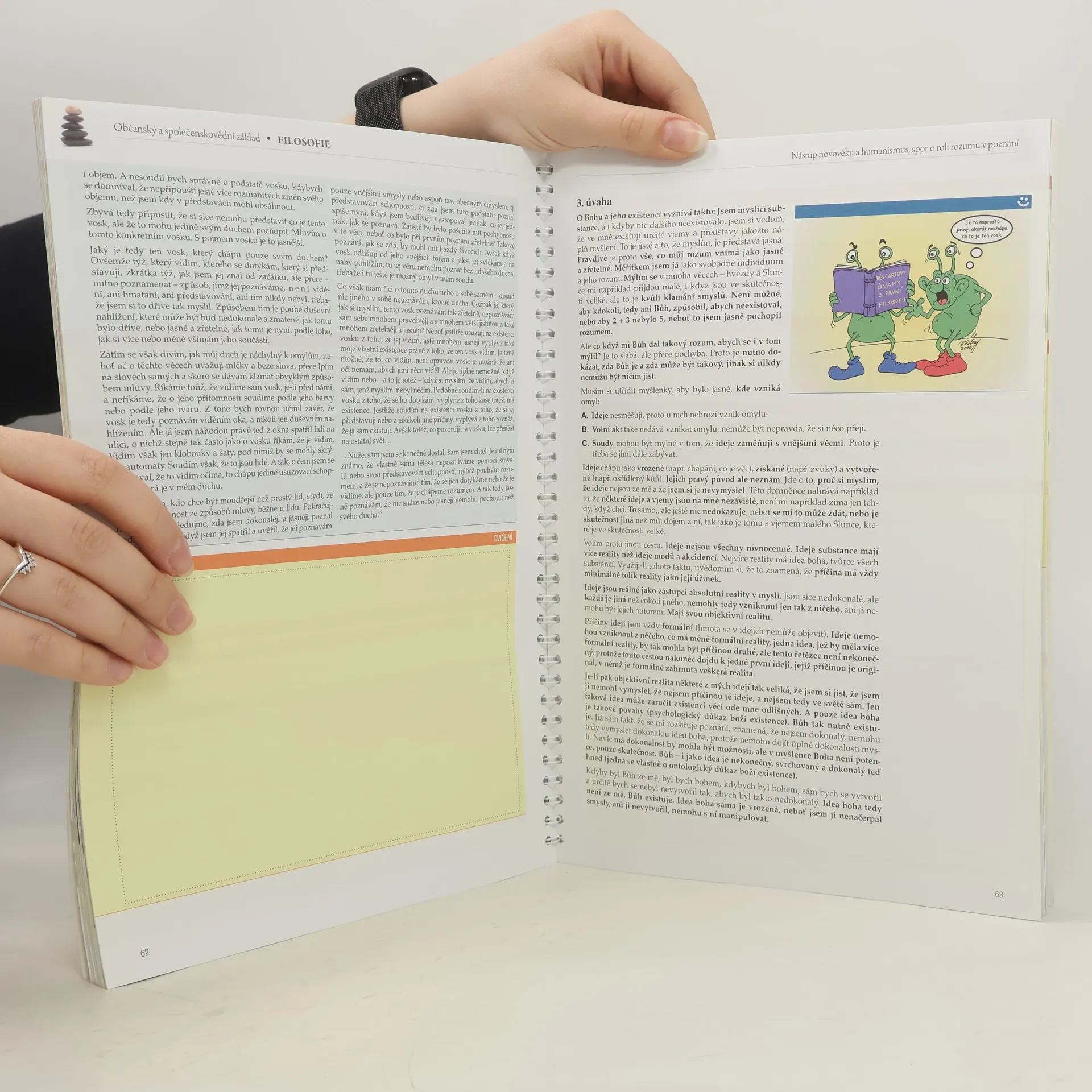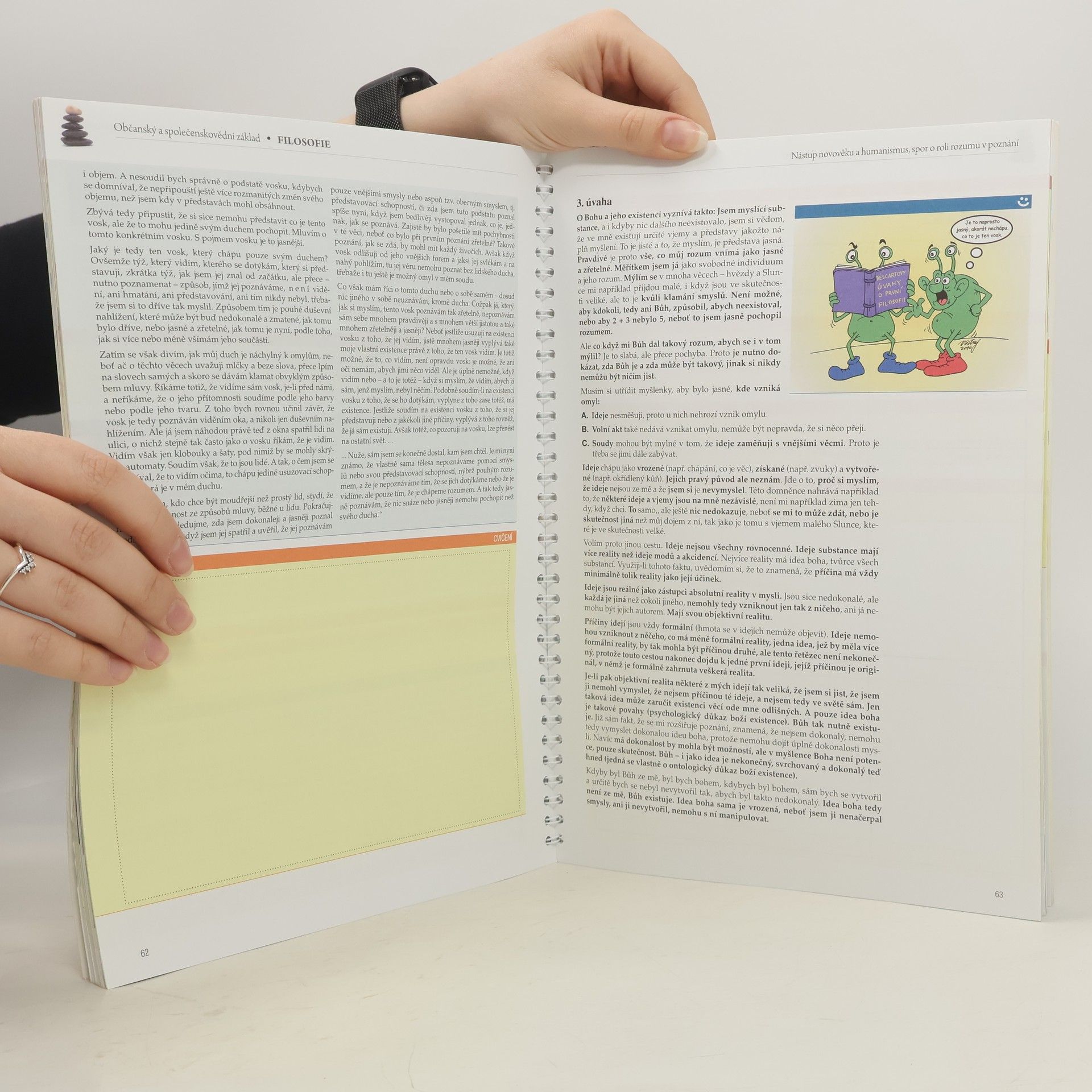 Učebnice kompletně pokrývá problematiku filosofie od nejstaršího řeckého myšlení až po nejnovější směry. Objasňuje pojem filosofie, její poslání i vliv na ostatní sféry lidského života. Učí, jak se s pomocí filosofie můžeme dívat na svět a jak můžeme pochopit dění kolem nás.V neposlední řadě seznamuje s nejvýznačnějšími filosofy světa a srozumitelně prezentuje jejich díla i myšlenky. Publikace je pojata interaktivním způsobem, aby studenti nebyli nuceni k pouhému memorování filosofických pouček, ale naopak se sami pokusili o proniknutí do tajů jedné z nejstarších věd. Učebnice plně odpovídá osnovám předmětu Filosofie ze vzdělávacího programu Občanský a společenskovědní základ.