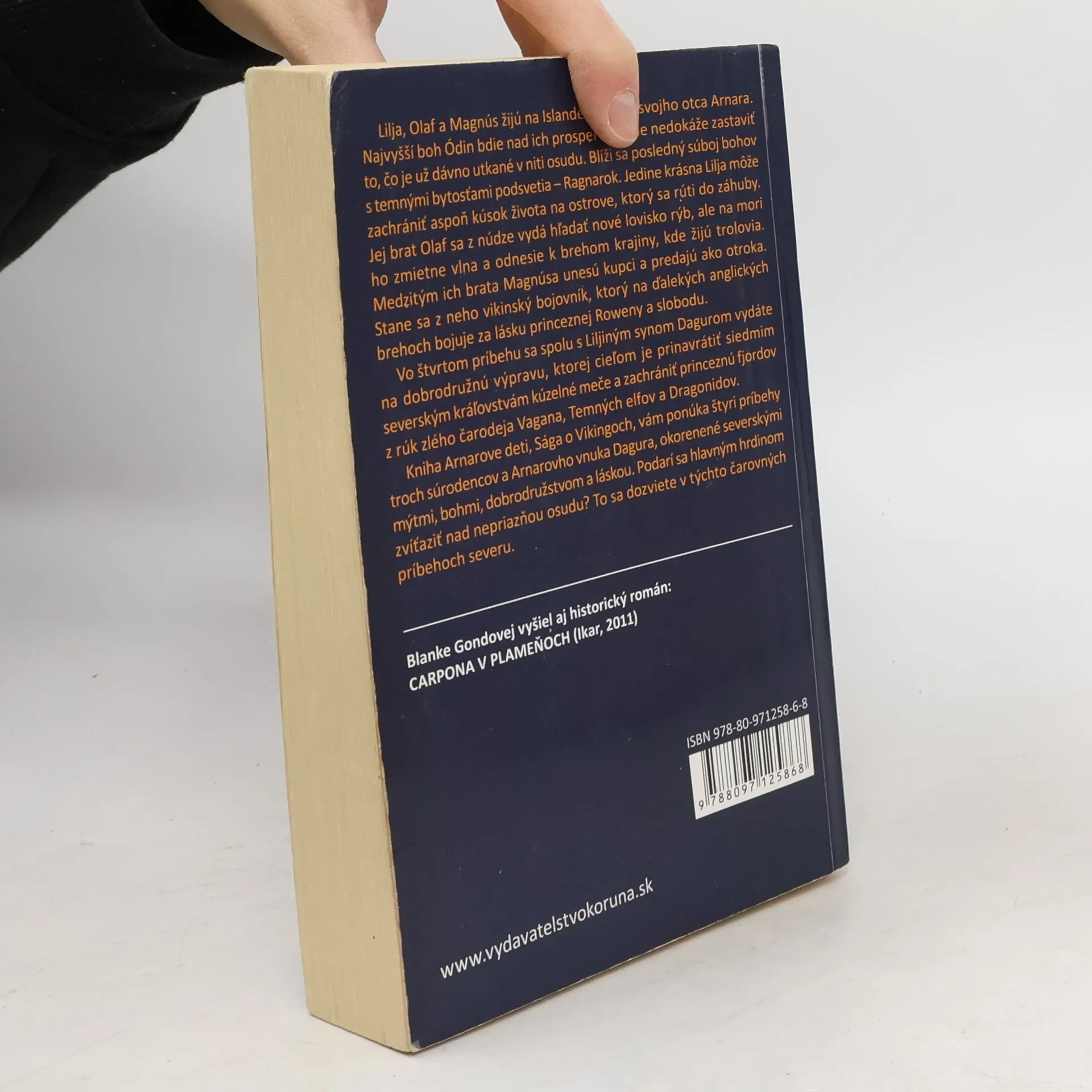 Lilja, Olaf a Magnús žijú na Islande v osade svojho otca Arnara. Najvyšší boh Ódin bdie nad ich prosperitou, ale nedokáže zastaviť to, čo je už dávno utkané v niti osudu. Blíži sa posledný súboj bohov s temnými bytosťami podsvetia - Ragnarok. Jedine krásna Lilja môže zachrániť aspoň kúsok života na ostrove, ktorý sa rúti do záhuby. Jej brat Olaf sa z núdze vydá hľadať nové lovisko rýb, ale na mori ho zmietne vlna a odnesie k brehom krajiny, kde žijú trolovia. Medzitým ich brata Magnúsa unesú kupci a predajú ho ako otroka. Stane sa z neho vikinský bojovník, ktorý na ďalekých anglických brehoch bojuje za lásku princeznej Roweny a slobodu. Vo štvrtom príbehu sa spolu s Liljiným synom Dagurom vydáte na dobrodružnú výpravu, ktorej cieľom je prinavrátiť siedmim severským kráľovstvám kúzelné meče a zachrániť princeznú fjordov z rúk zlého čarodeja Vagana, Temných elfov a Dragonidov. Kniha Arnarove deti, Sága o Vikingoch, vám ponúka štyri príbehy troch súrodencov a Arnarovho vnuka Dagura, okorenené severskými mýtmi, bohmi, dobrodružstvom a láskou. Podarí sa hlavným hrdinom zvíťaziť nad nepriazňou osudu? To sa dozviete v týchto čarovných príbehoch severu.